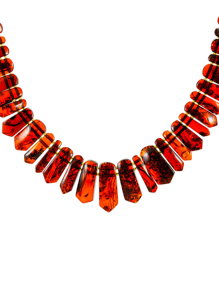 Короткое колье из натурального цельного вишнёвого янтаря «Клинья»