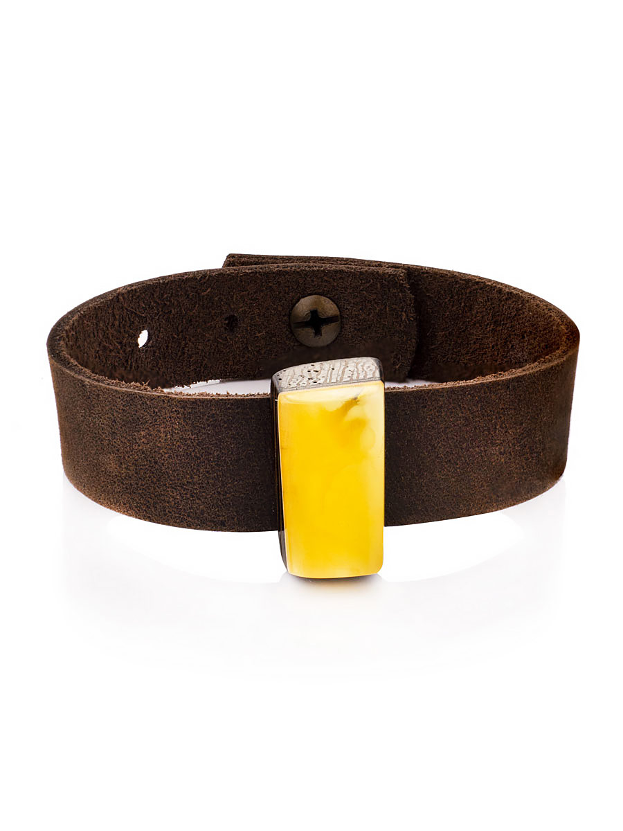 Кожаный браслет «Индонезия» с натуральным медовым янтарём и деревом