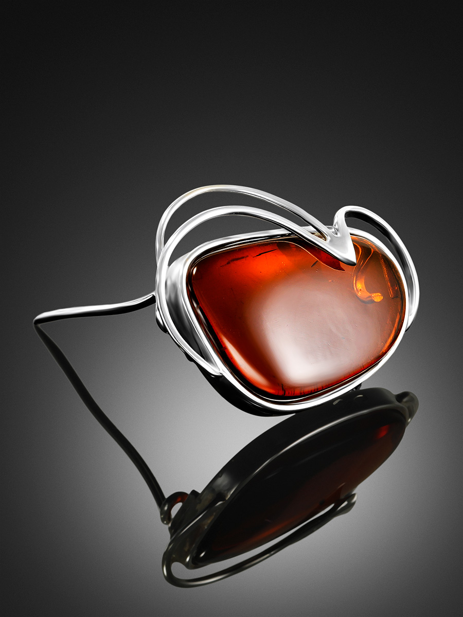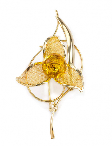 Красивая брошь из натурального балтийского янтаря коньячного цвета «Риальто»