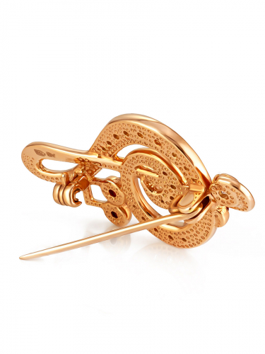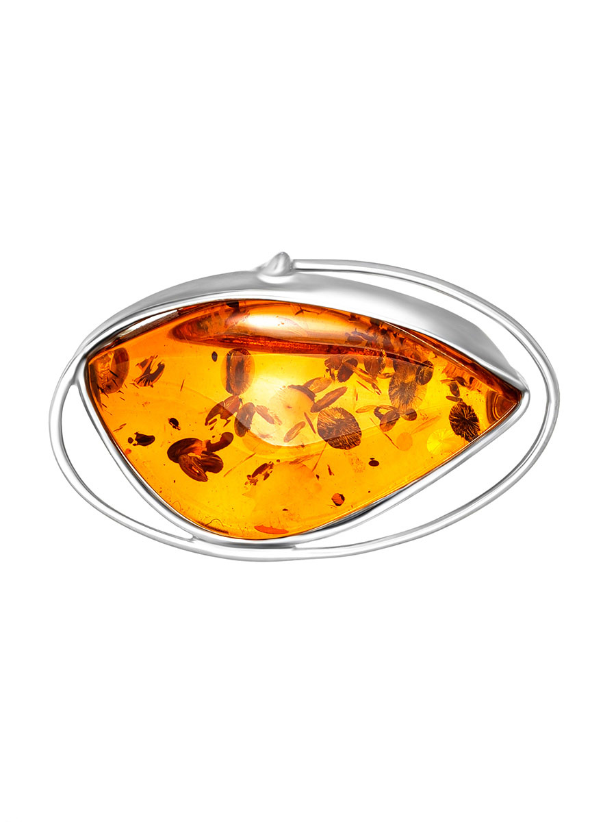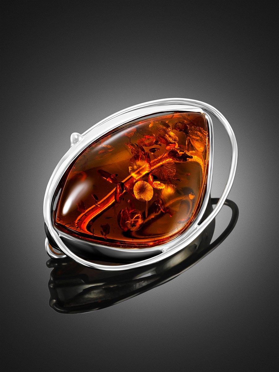 Красивая брошь из натурального искрящегося янтаря коньячного цвета «Риальто»
