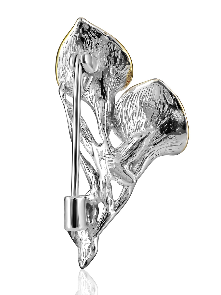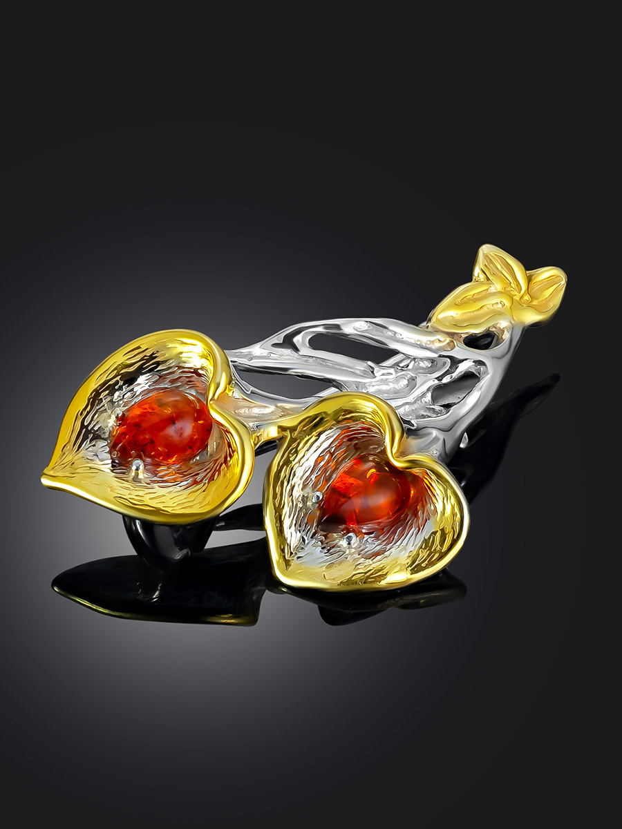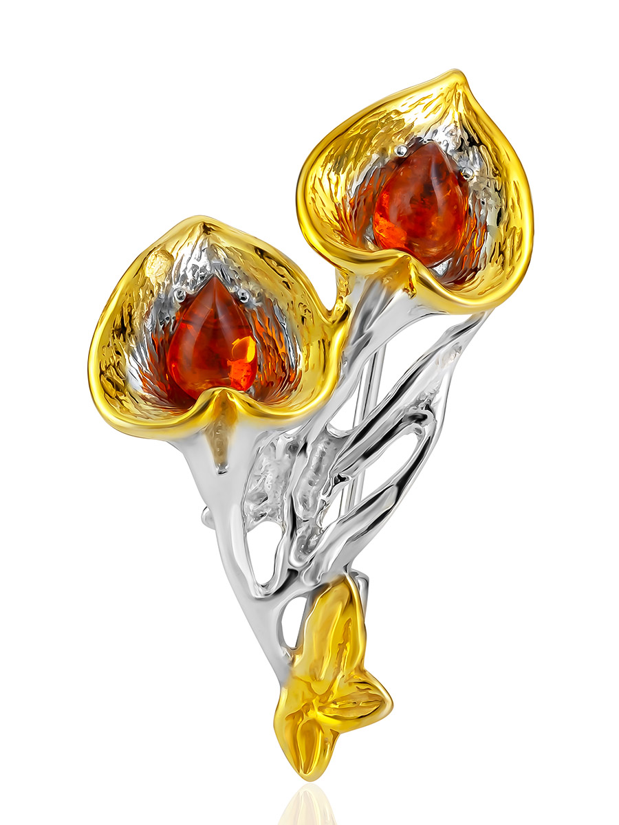 Красивая изящная брошь с натуральным коньячным янтарём «Калла»