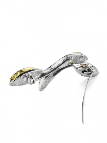 Красивая изысканная брошь «Скрипичный ключ» с натуральным янтарём и фианитами