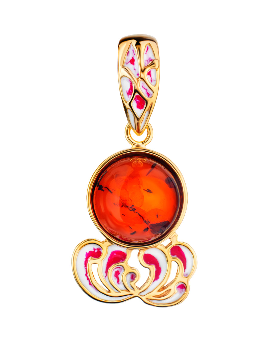 Красивая подвеска, украшенная натуральным коньячным янтарём «Суздаль»