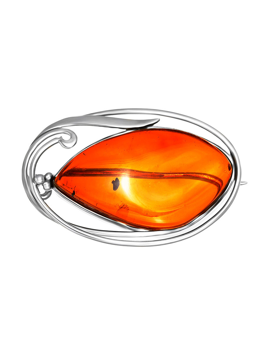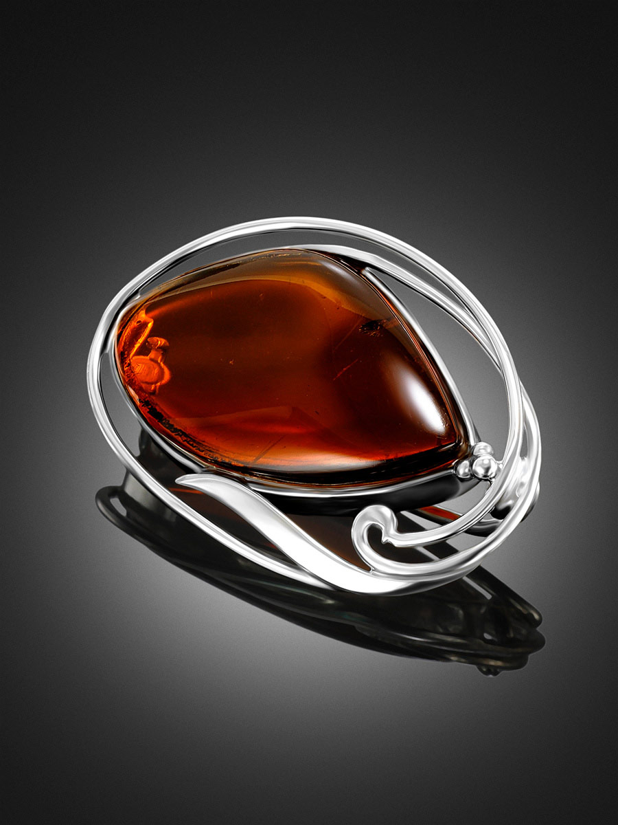 Красивая женственная брошь из янтаря чайного оттенка «Маньяна»