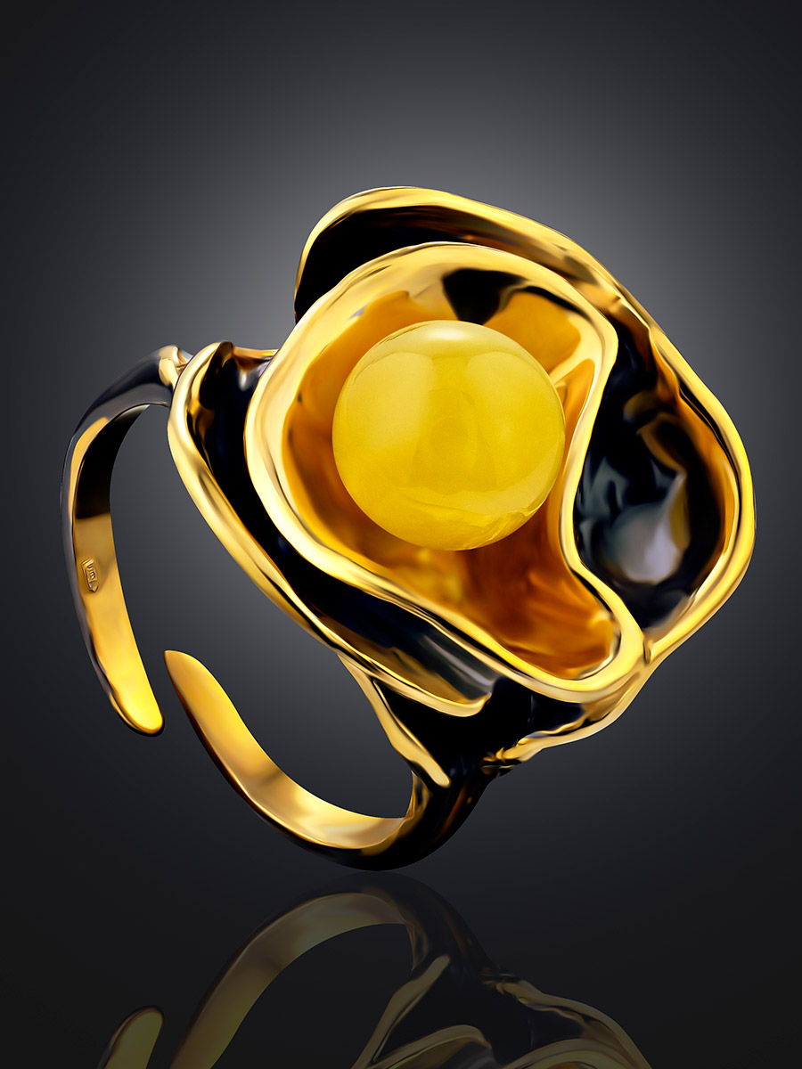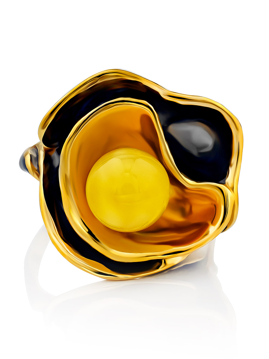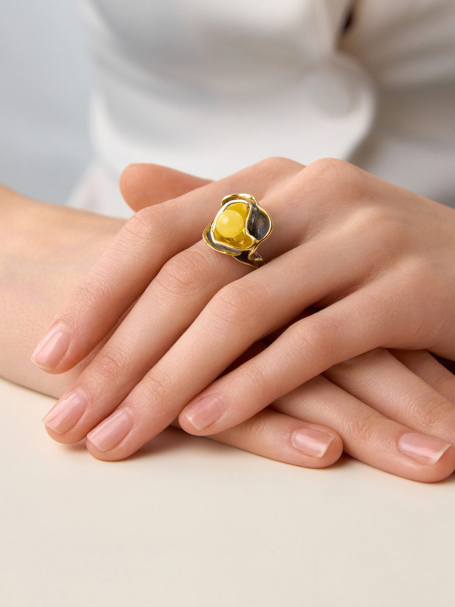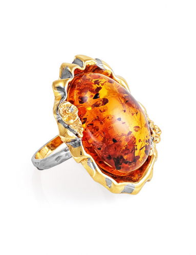 Красивое и оригинальное кольцо из янтаря «Турандот»