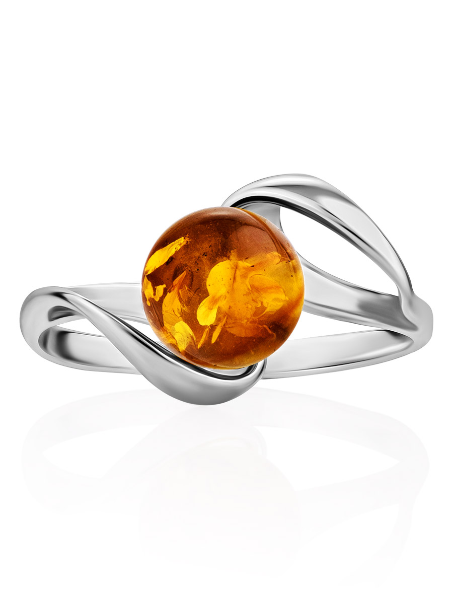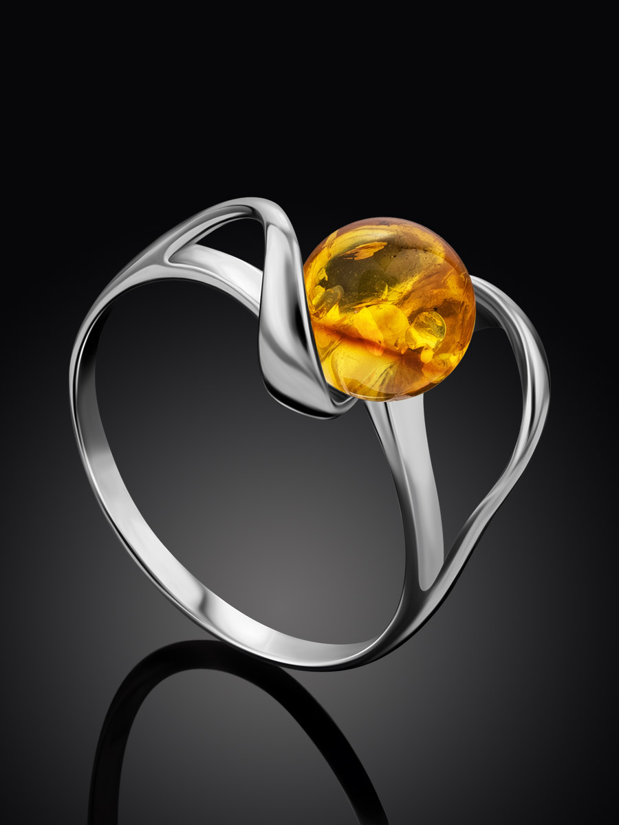 Красивое кольцо из натурального золотисто-лимонного янтаря «Альдебаран»