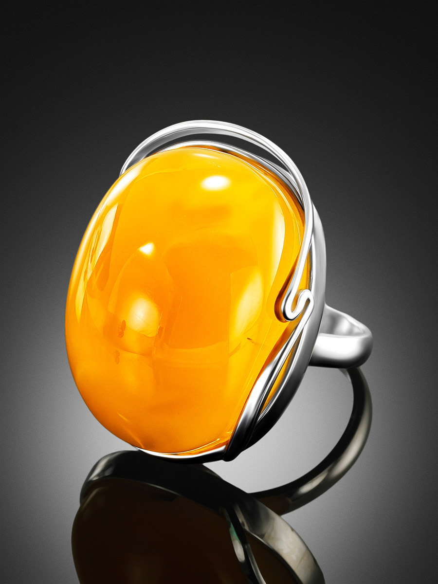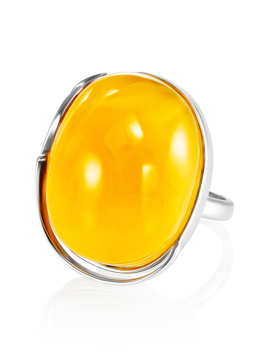 Красивое кольцо с натуральным цельным янтарём «Маньяна»