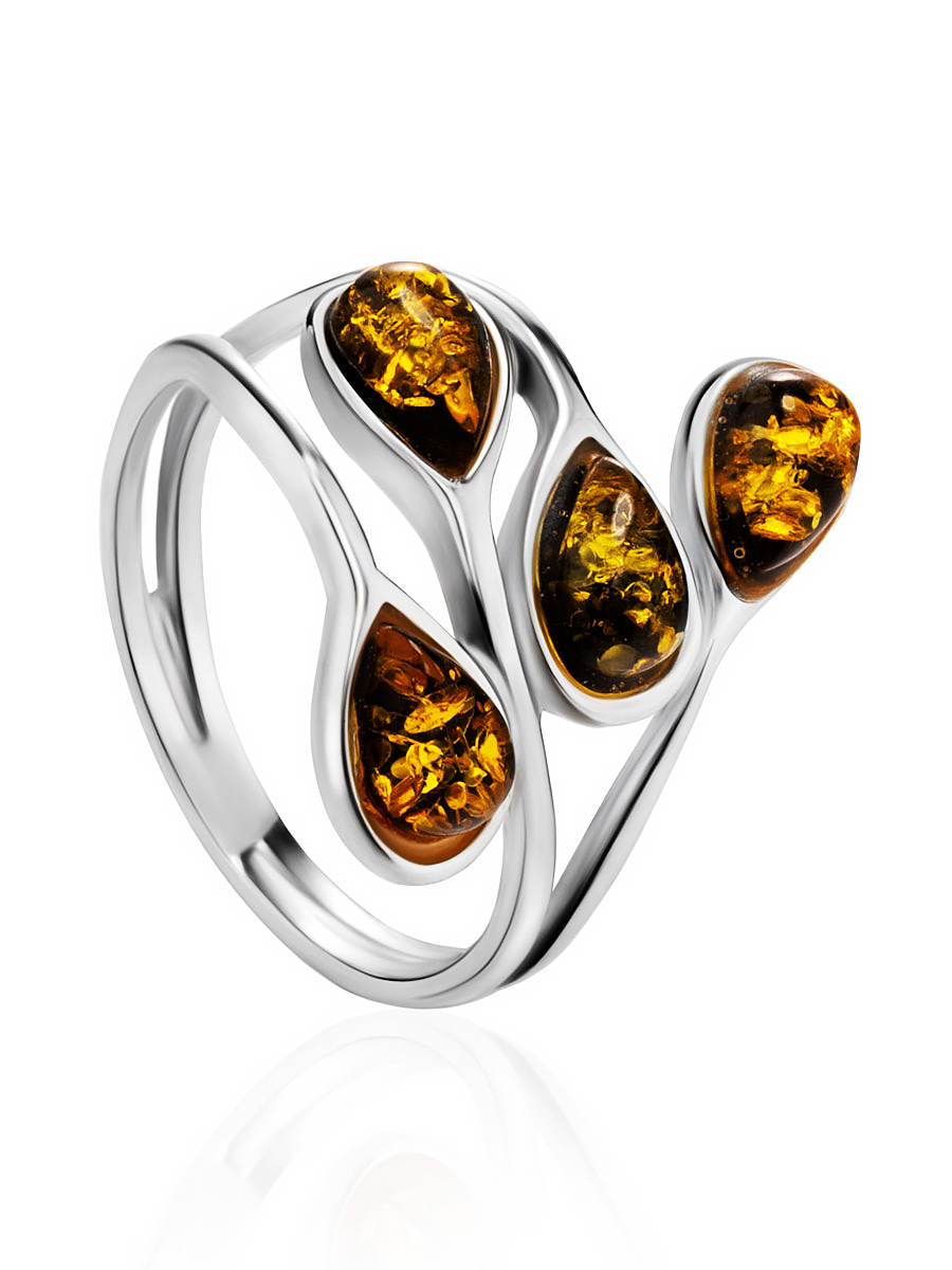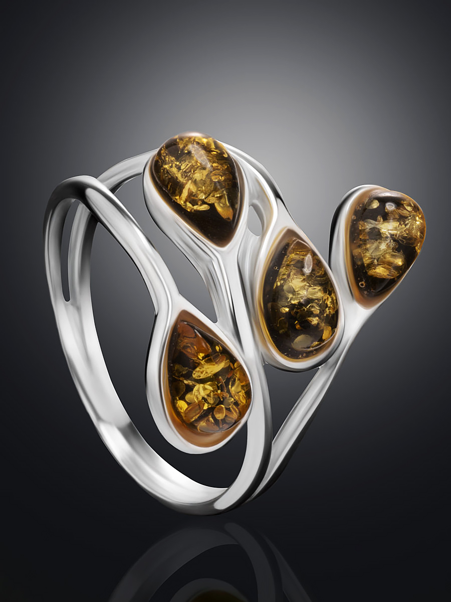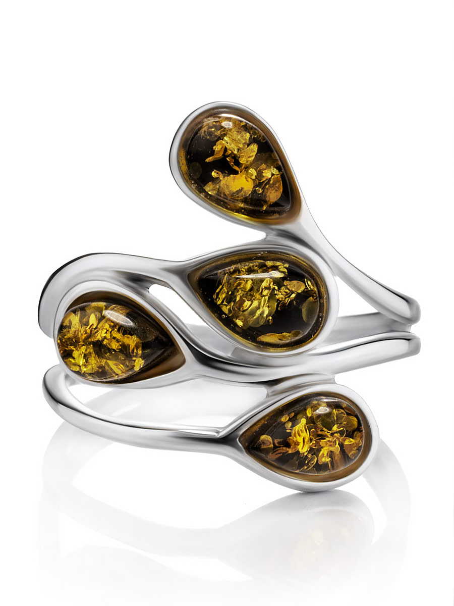 Красивое кольцо «Сорренто» из янтаря зелёного цвета