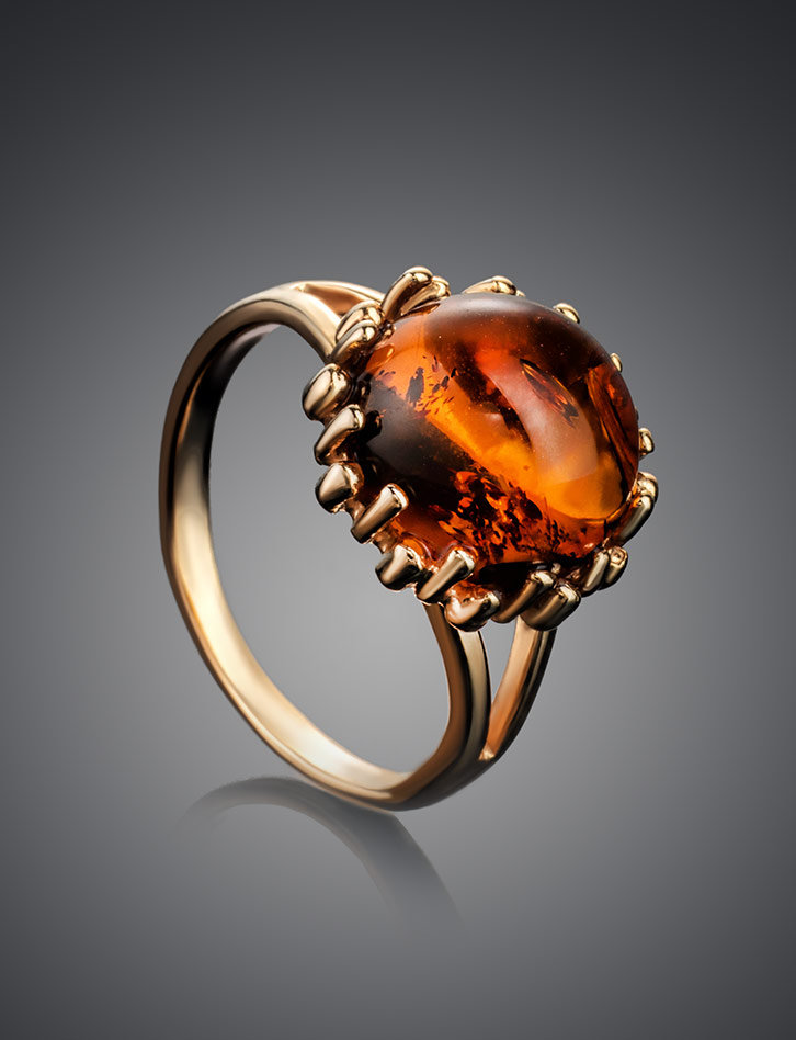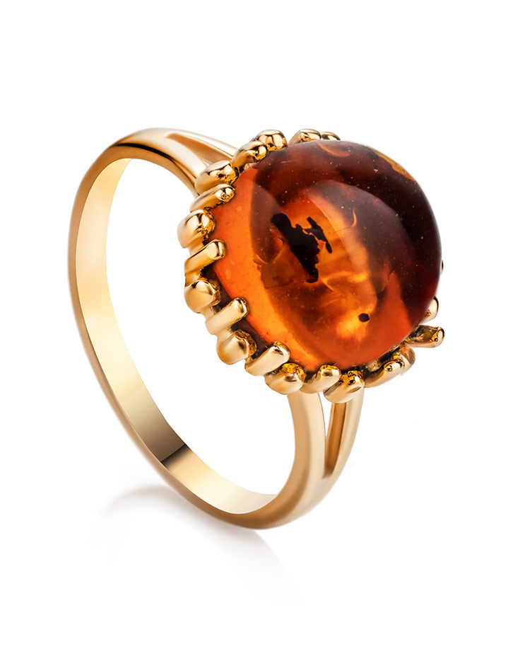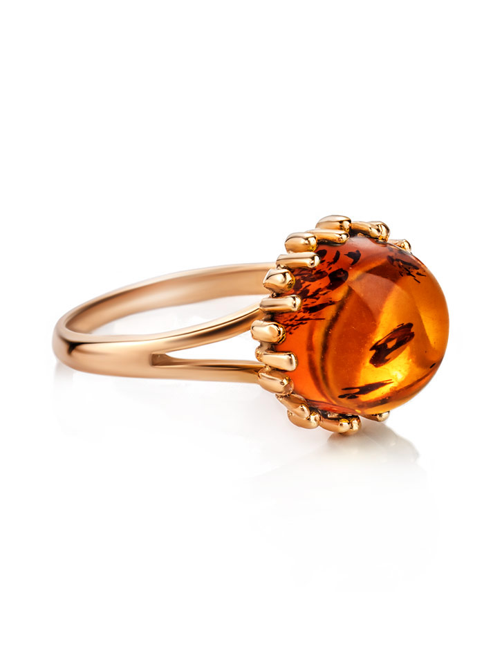 Красивое переливающееся кольцо «Бруния» с натуральным коньячным янтарём