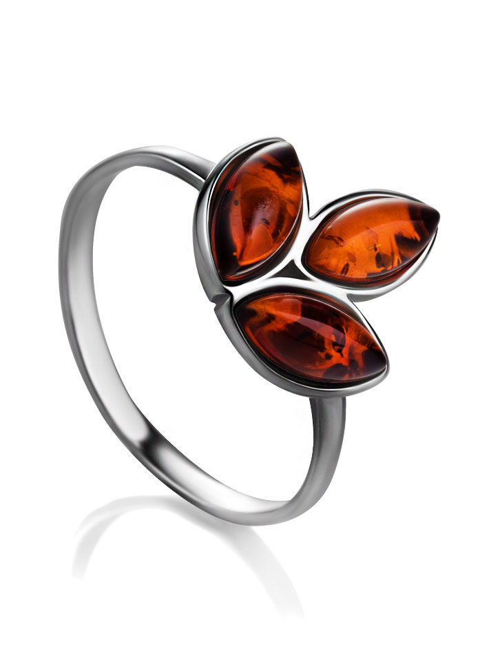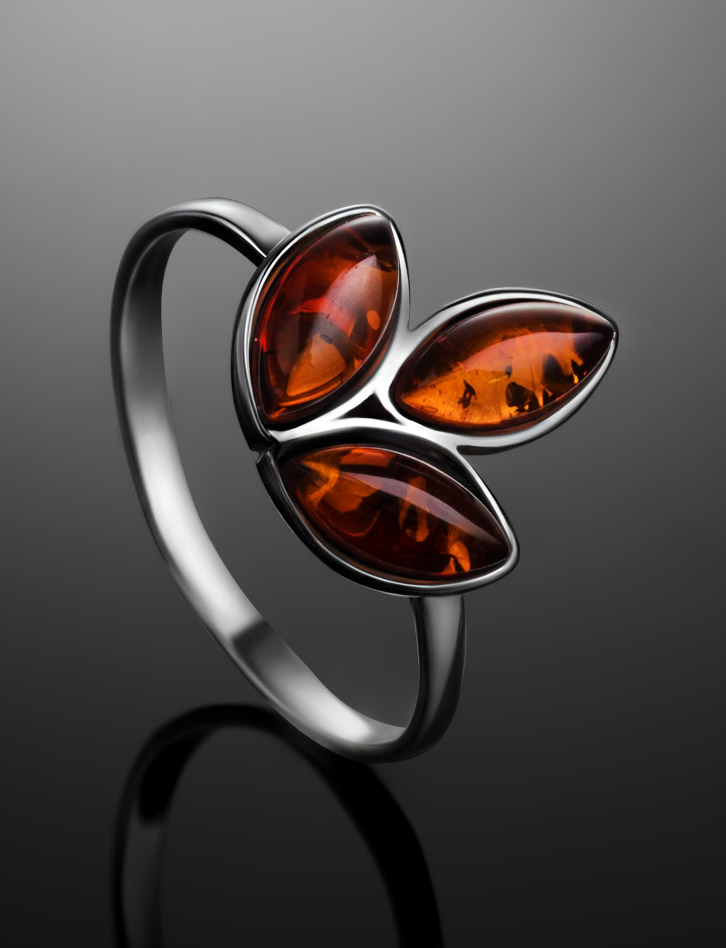 Красивое стилизованное кольцо «Флора» с коньячным янтарём