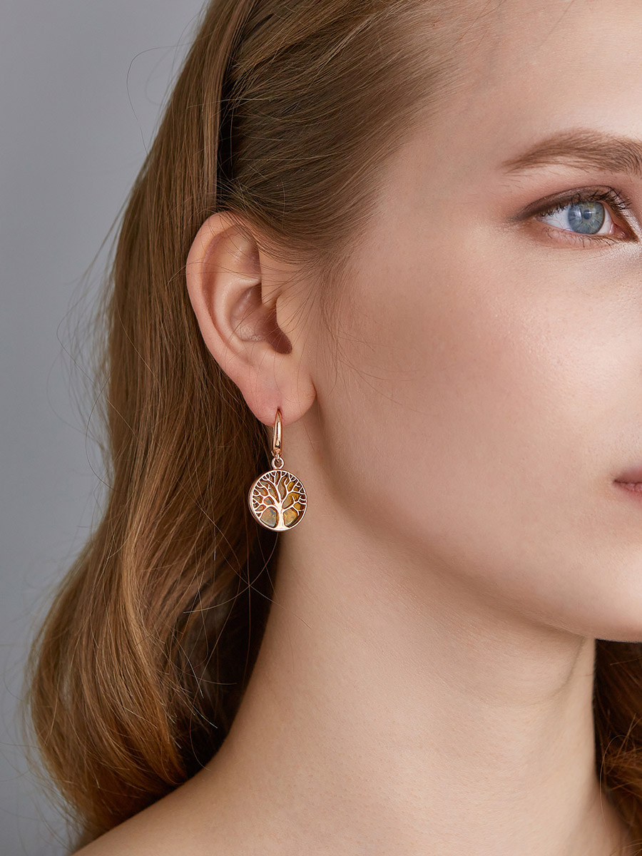 Красивые и яркие серьги из янтаря «Бельтайн»