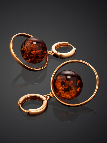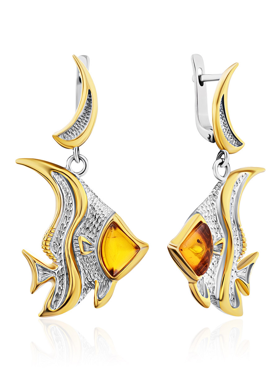 Красивые необычные серьги «Рыбка», украшенные янтарём