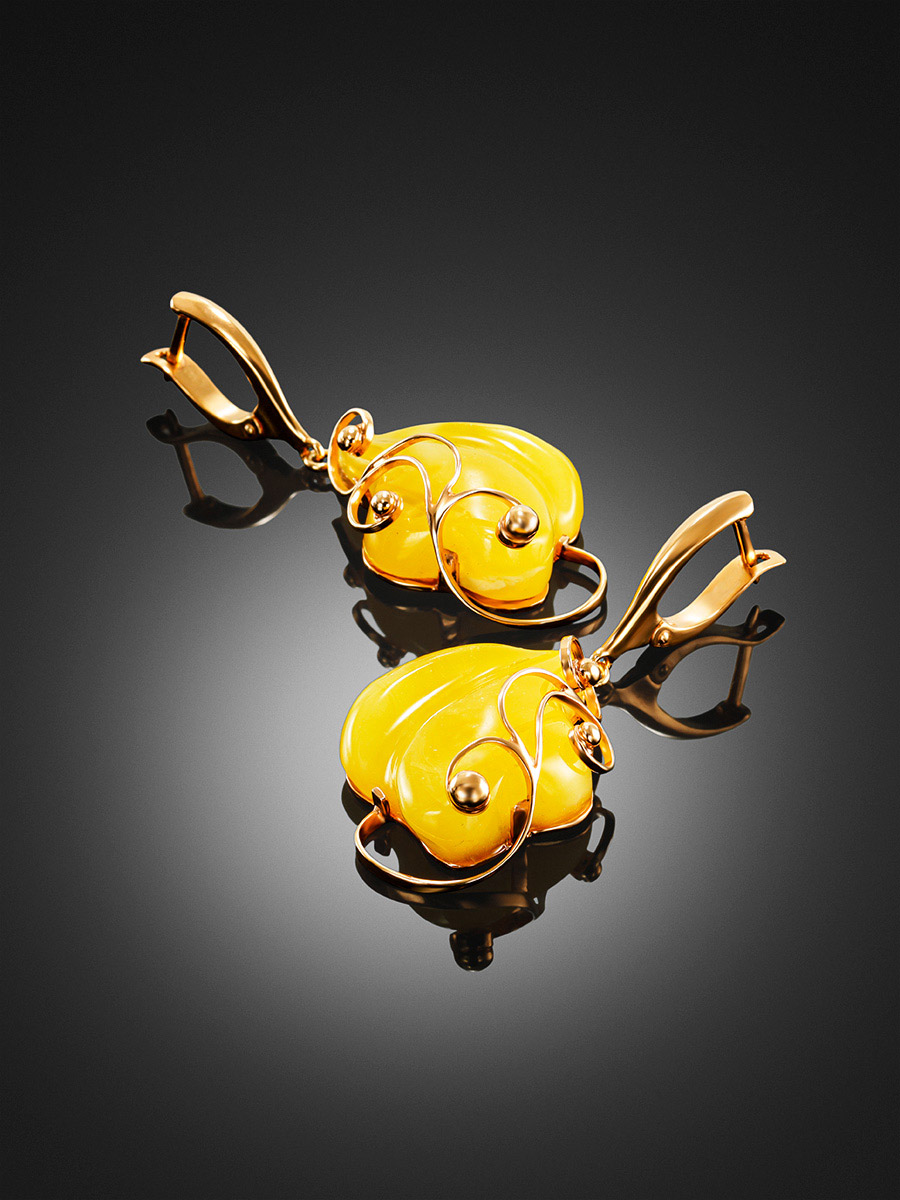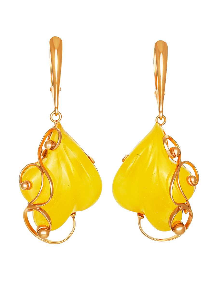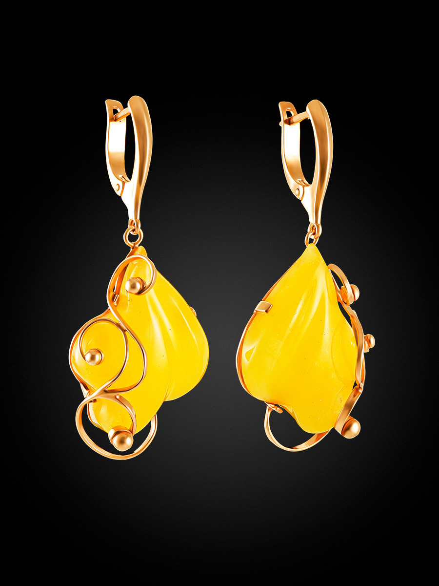 Красивые позолоченные серьги с янтарём медового цвета «Риальто»