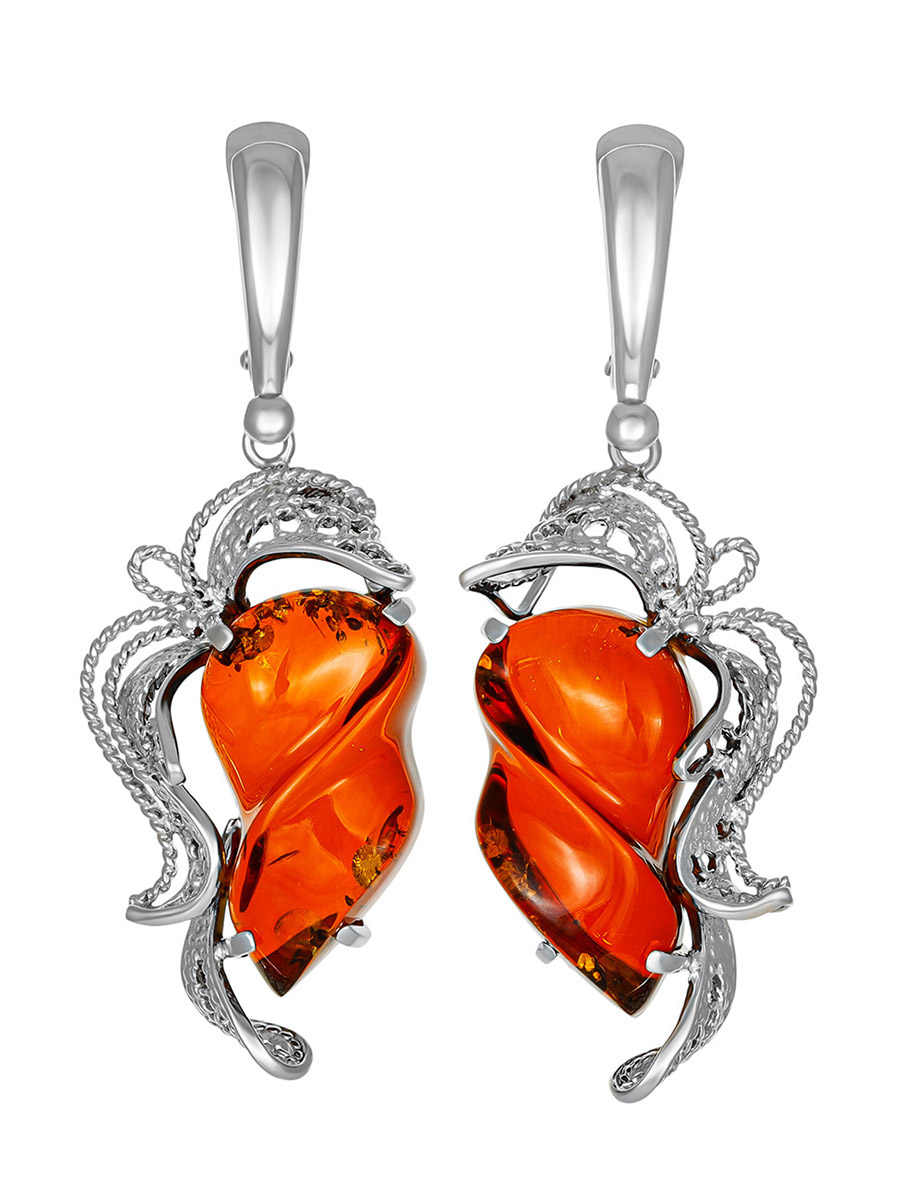 Красивые серьги «Филигрань» из тёмно-коньячного янтаря