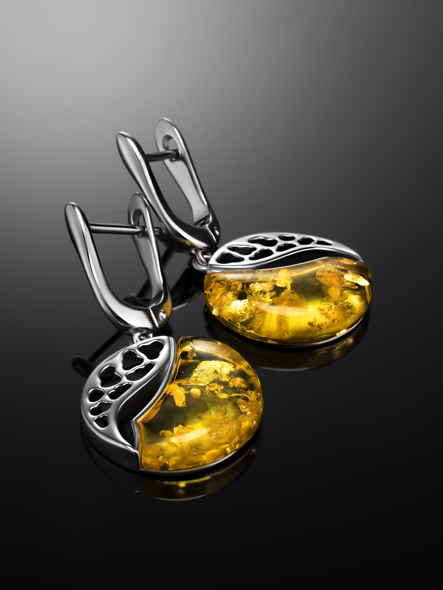 Красивые серьги из натурального искрящегося янтаря «Санрайз»