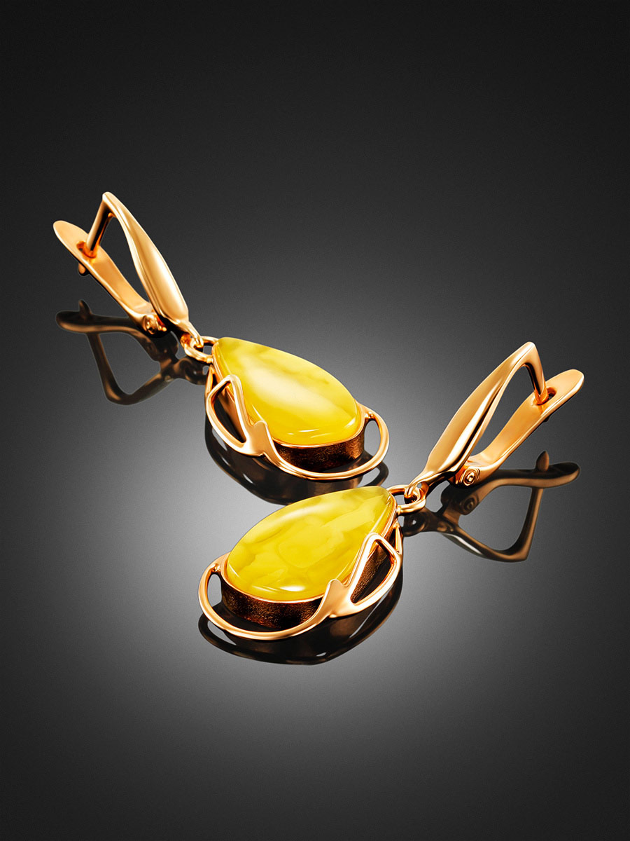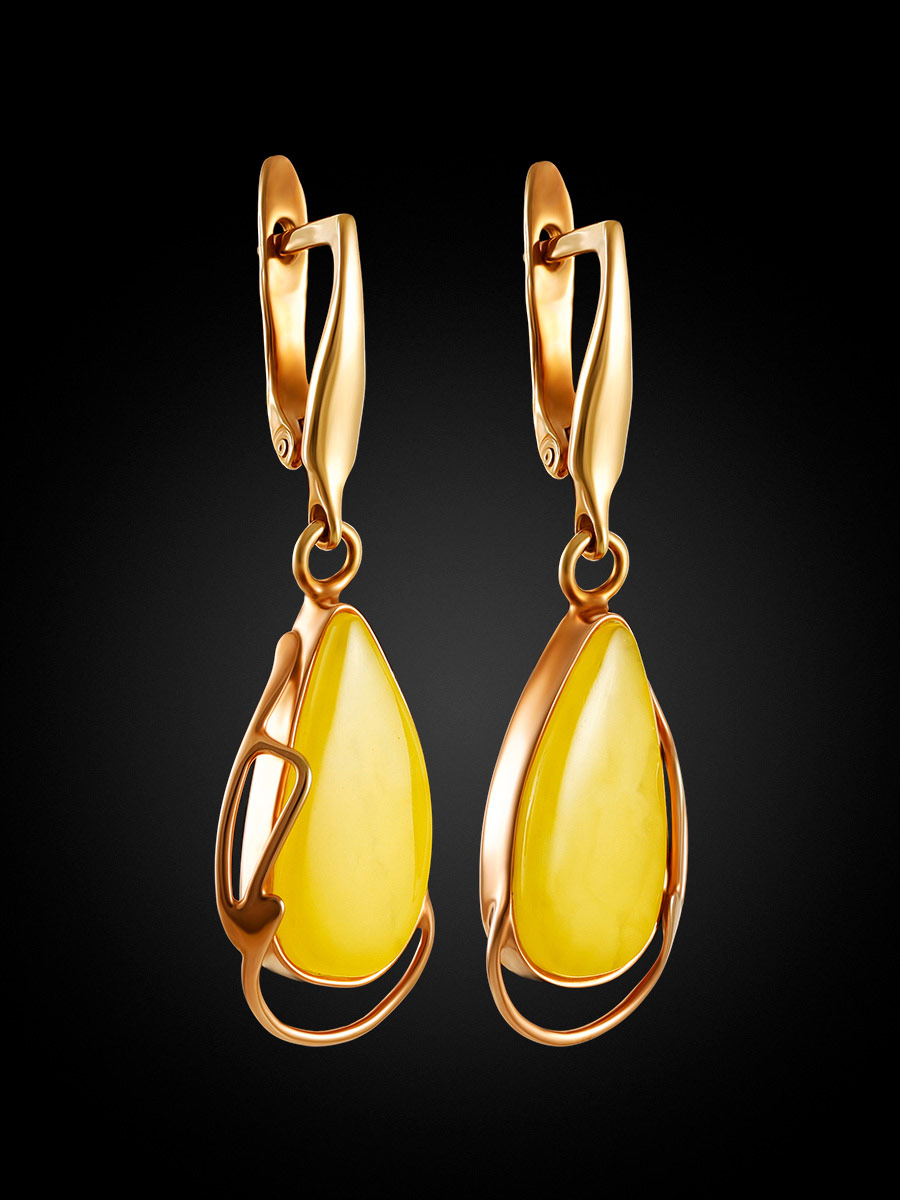 Красивые серьги из натурального медового янтаря «Маньяна»