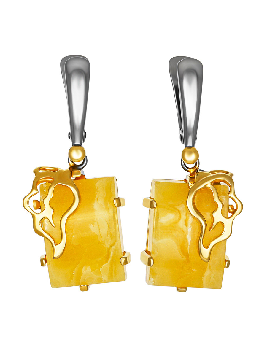 Красивые серьги из натурального янтаря с пейзажной текстурой «Версаль»