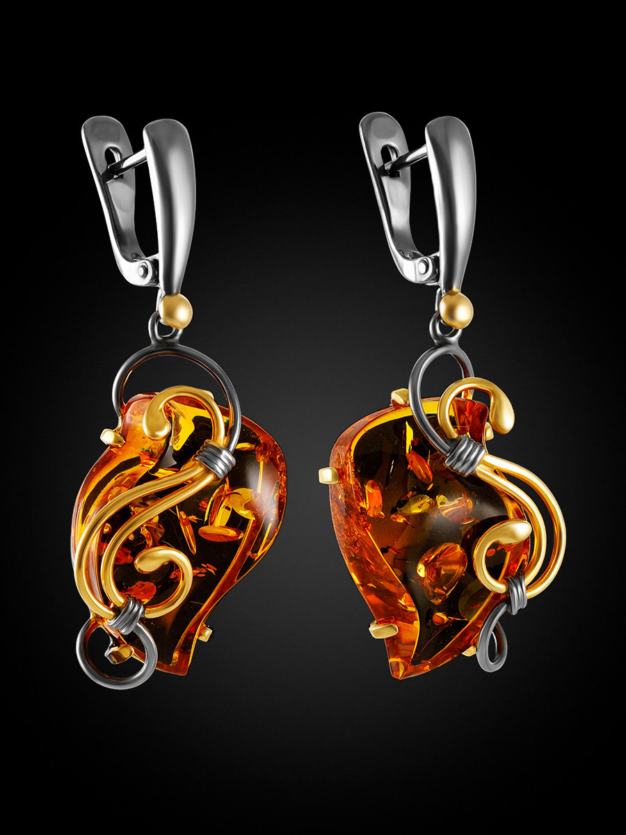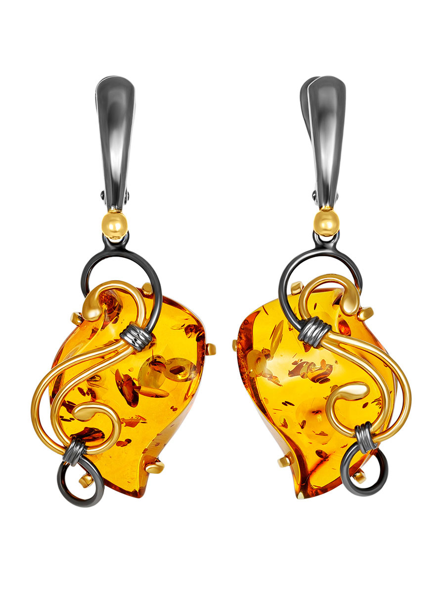 Красивые серьги «Риальто» с натуральным коньячным янтарём