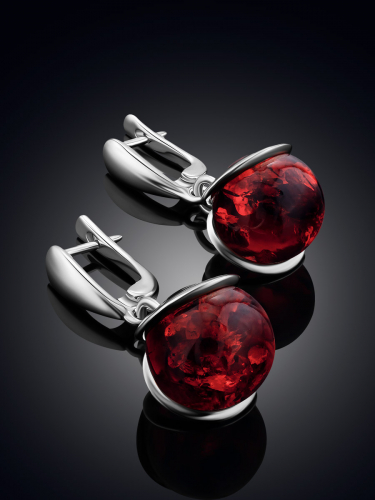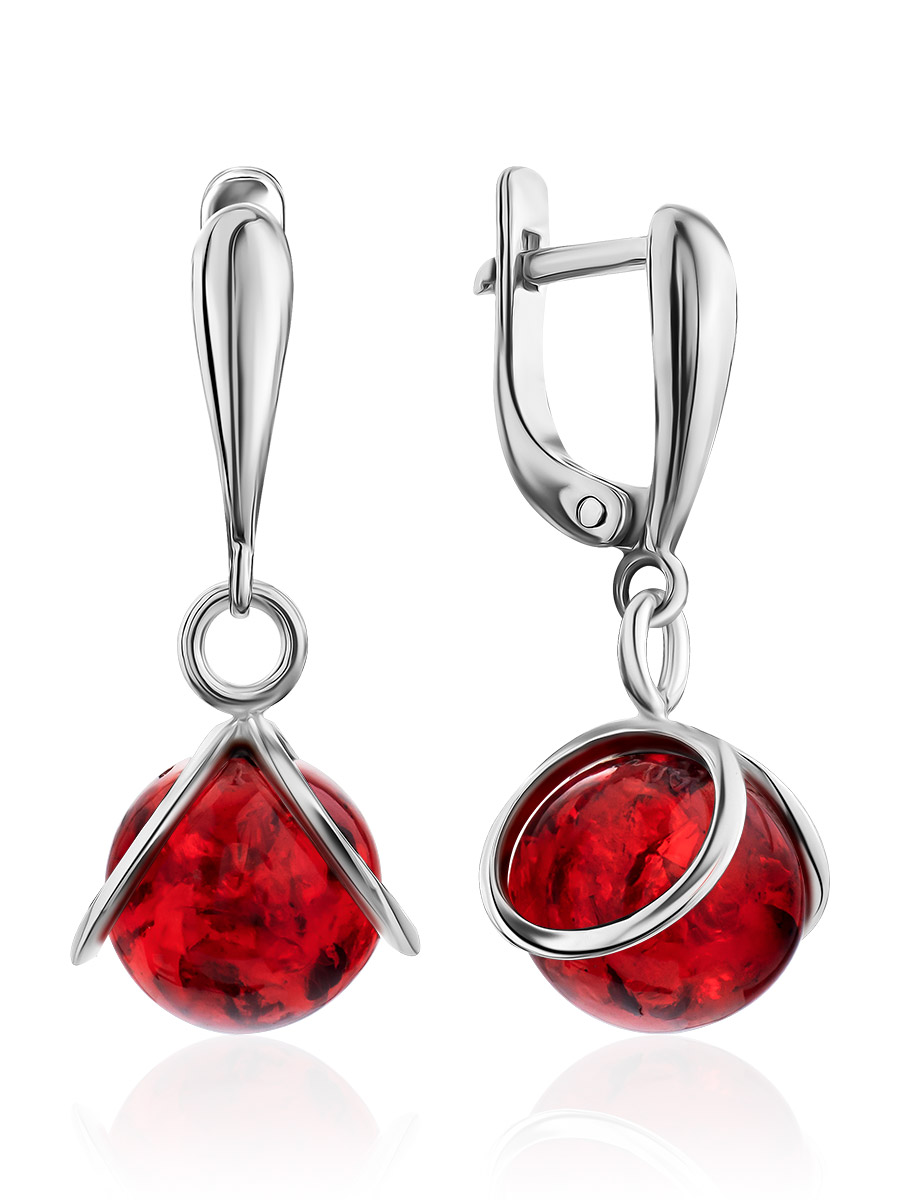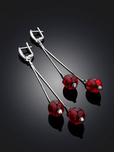 Красивые серьги с ярко-красными янтарными бусинами «Валенсия»
