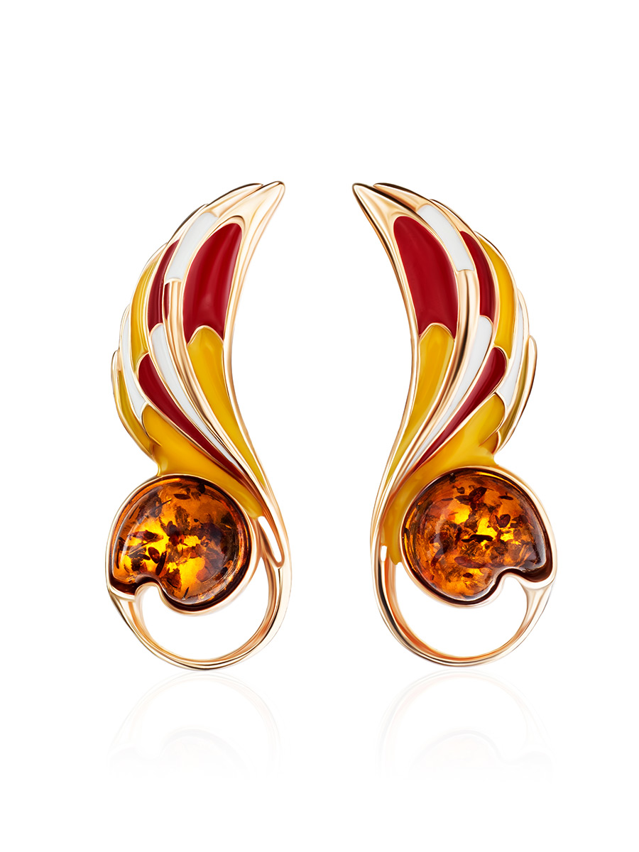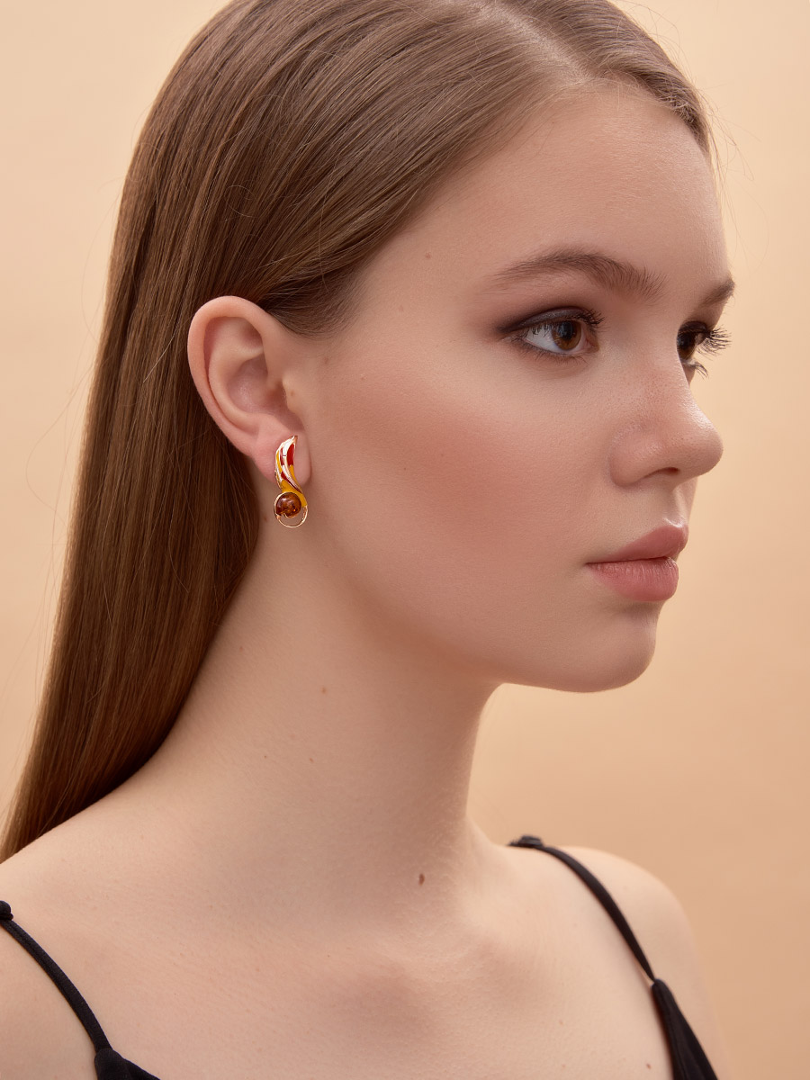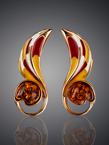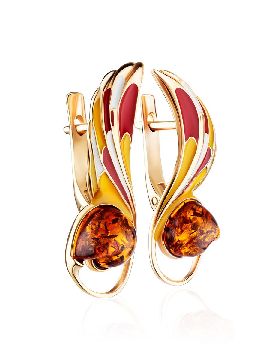 Красивые яркие серьги с эмалью и натуральным янтарём «Суздаль»