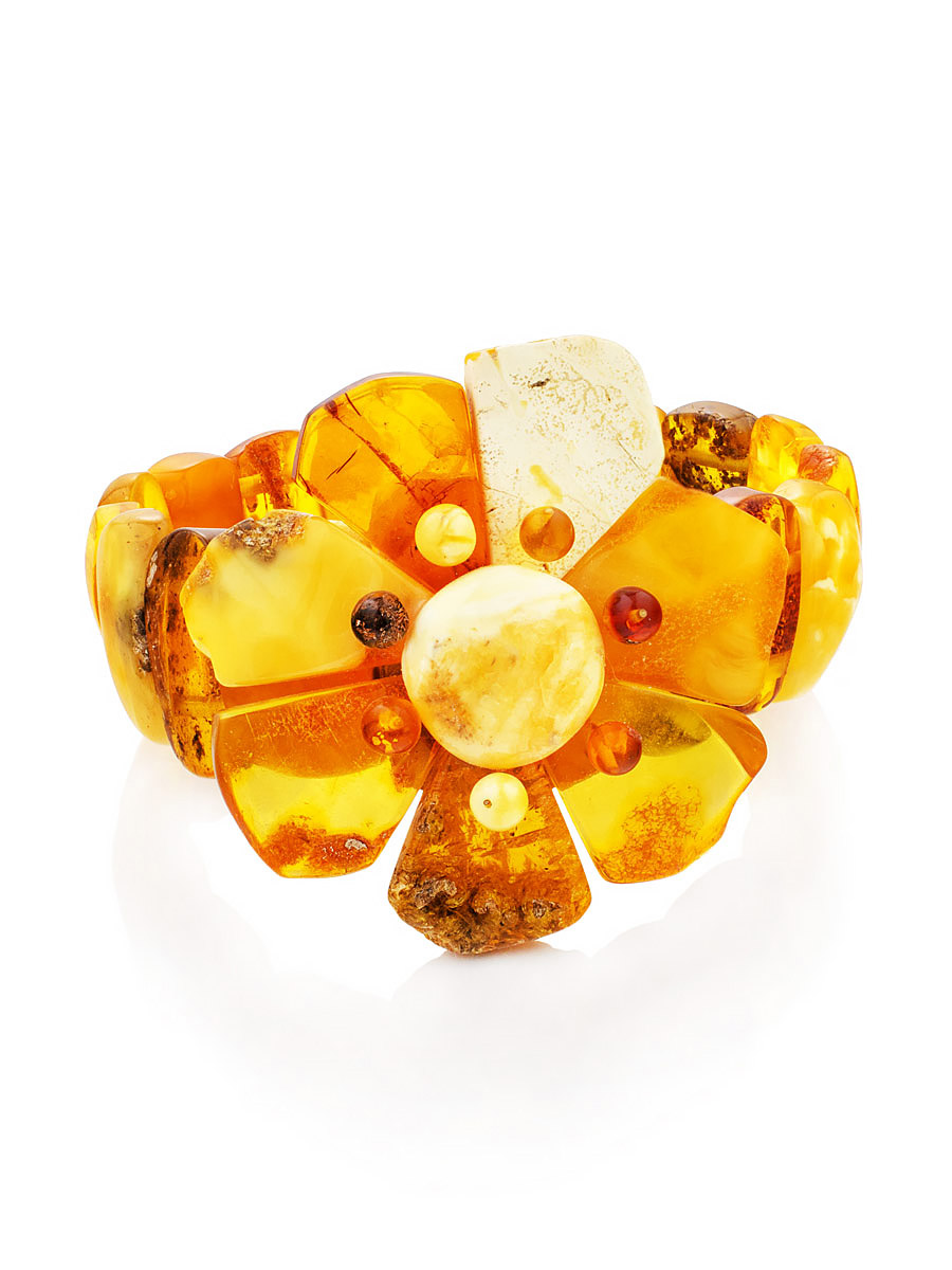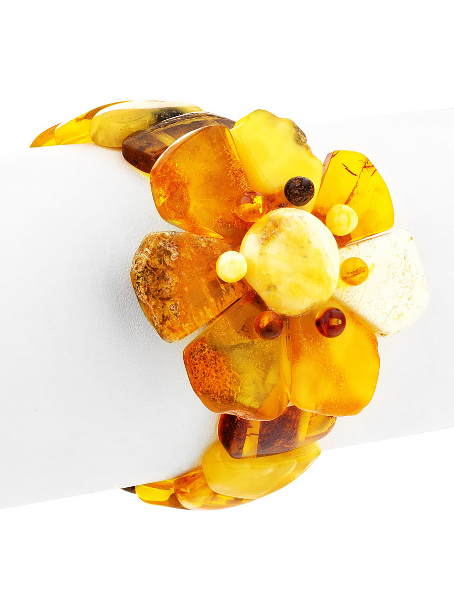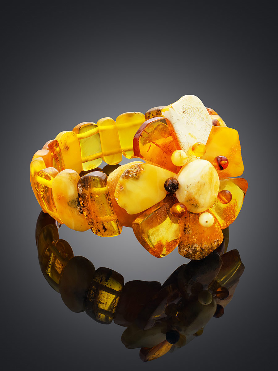Красивый браслет из натурального текстурного янтаря «Шиповник»