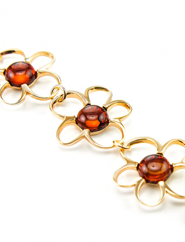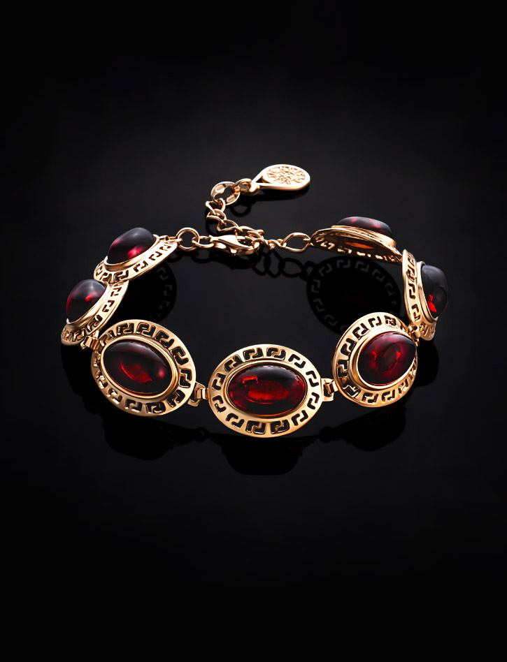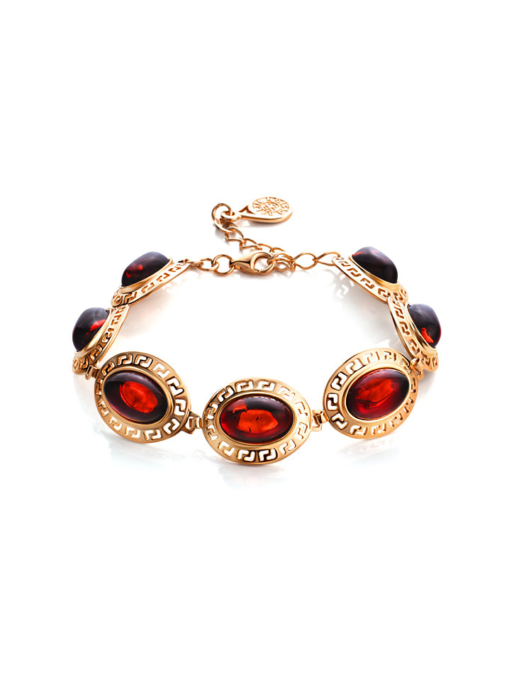 Красивый браслет с натуральным янтарём вишнёвого цвета «Эллада»