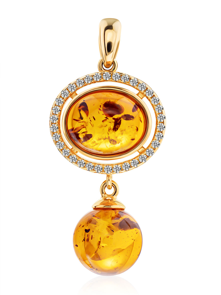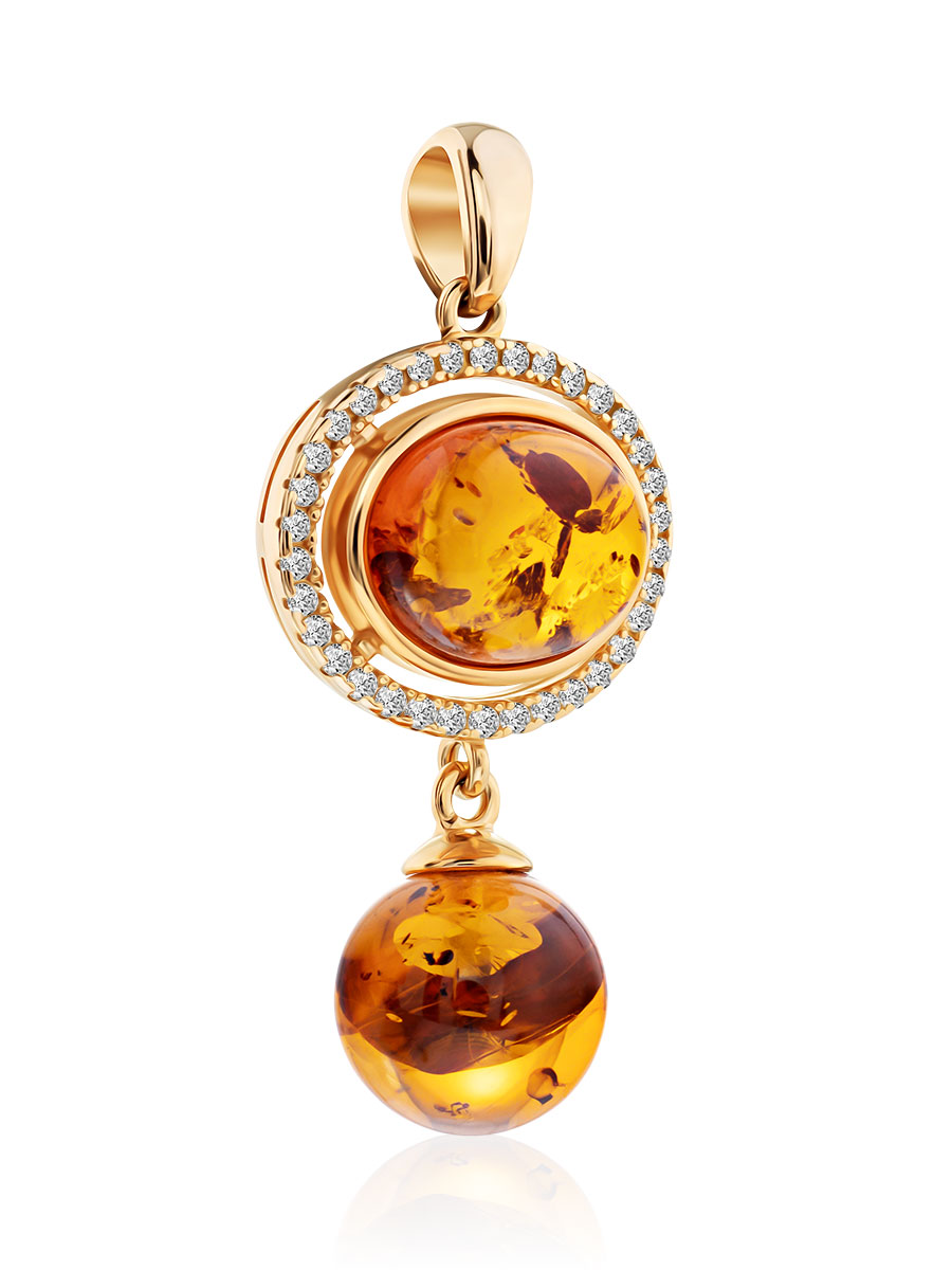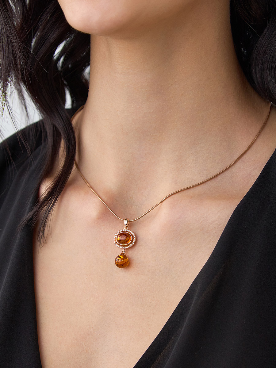 Красивый кулон «Ренессанс» из янтаря коньячного цвета