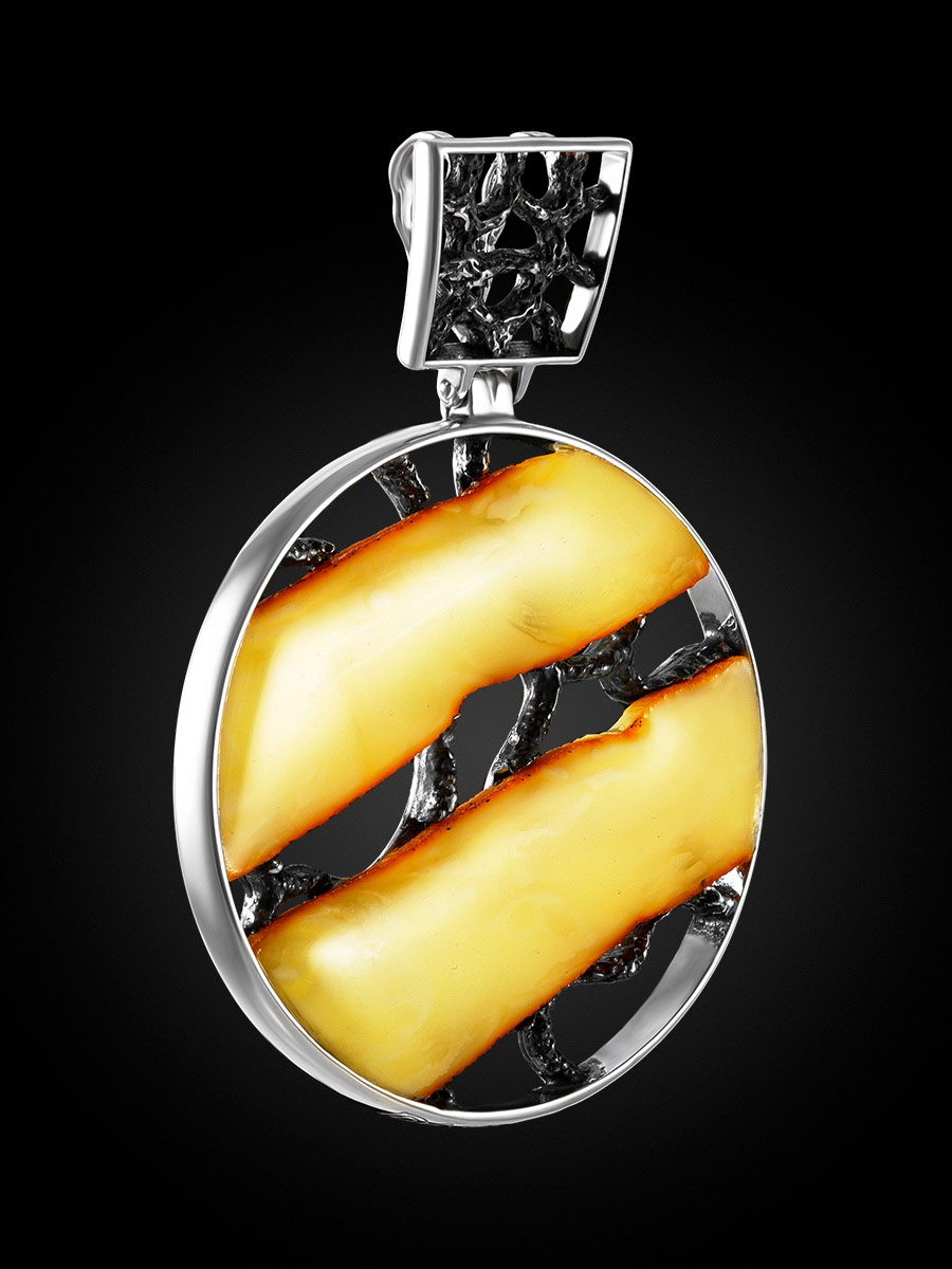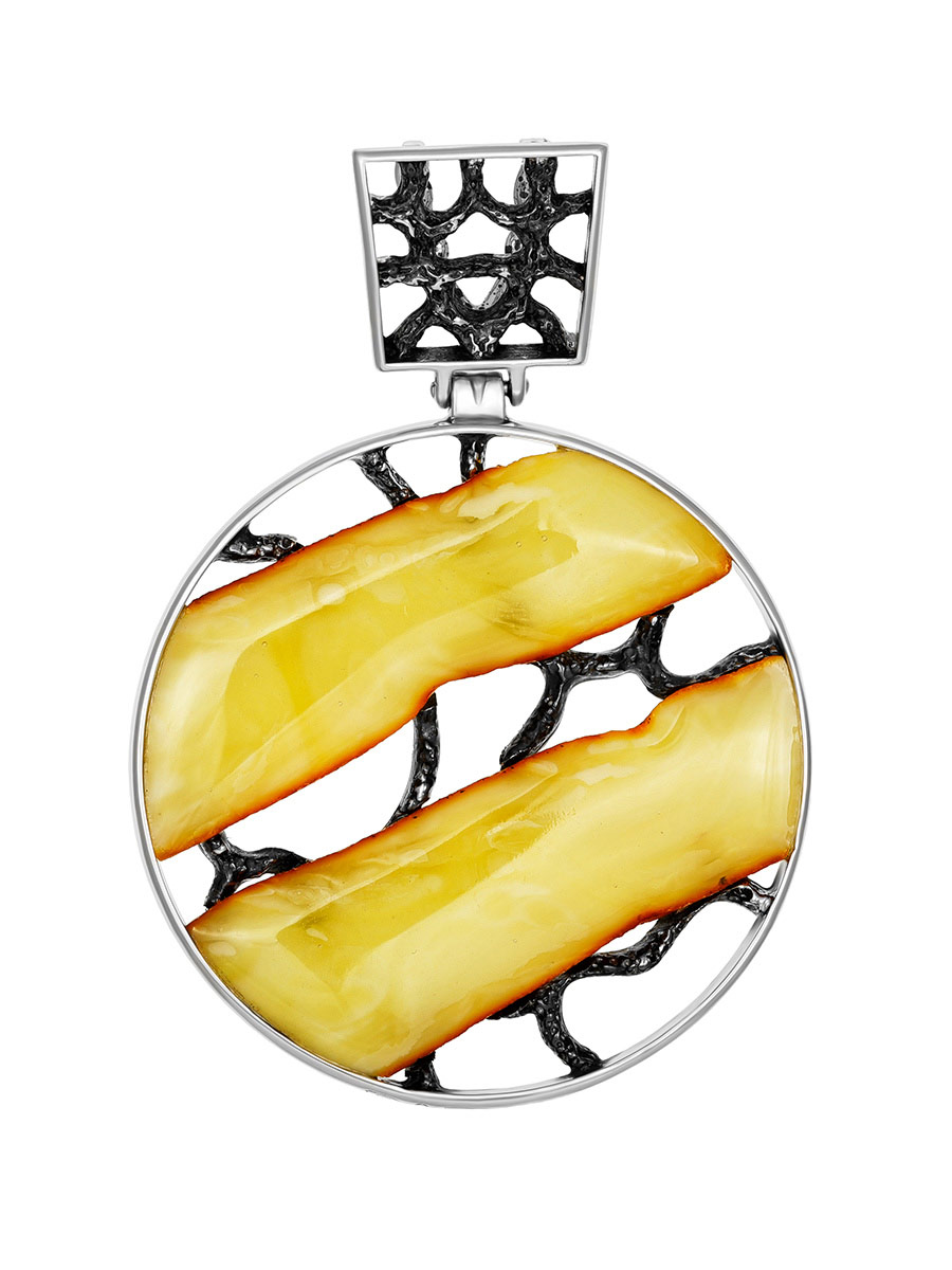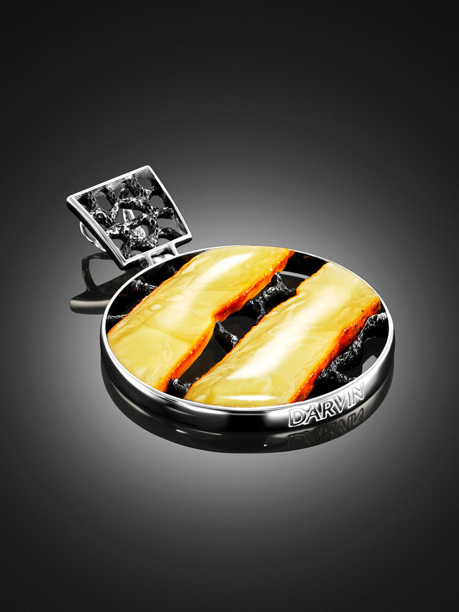 Круглая подвеска с натуральным пейзажным янтарём «Модерн»