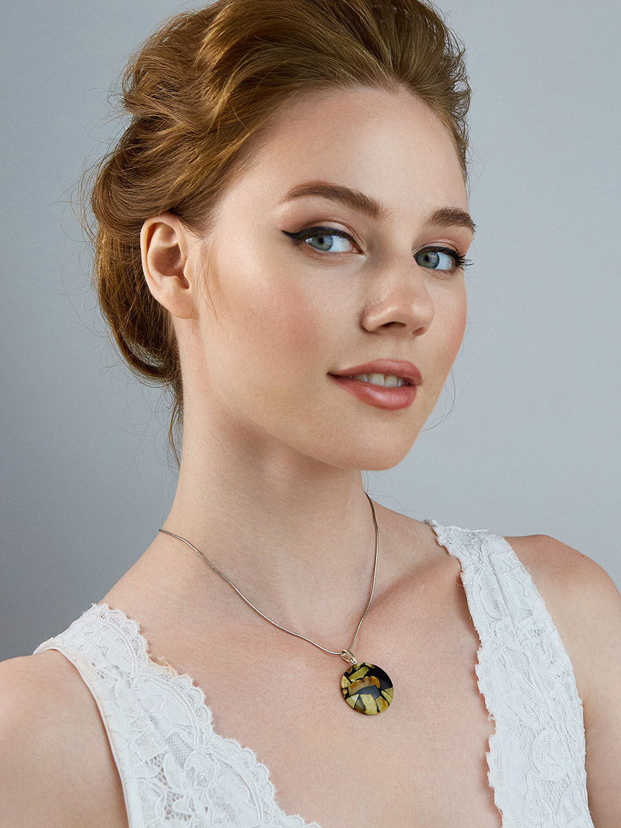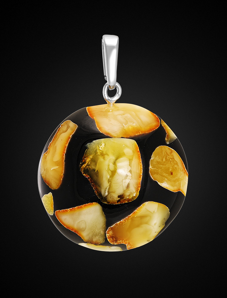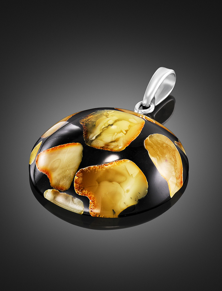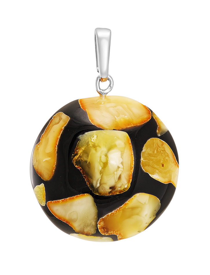 Круглая стильная подвеска с натуральным балтийским янтарём «Далматин»