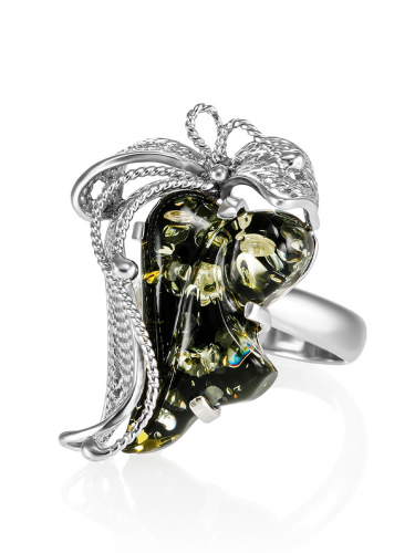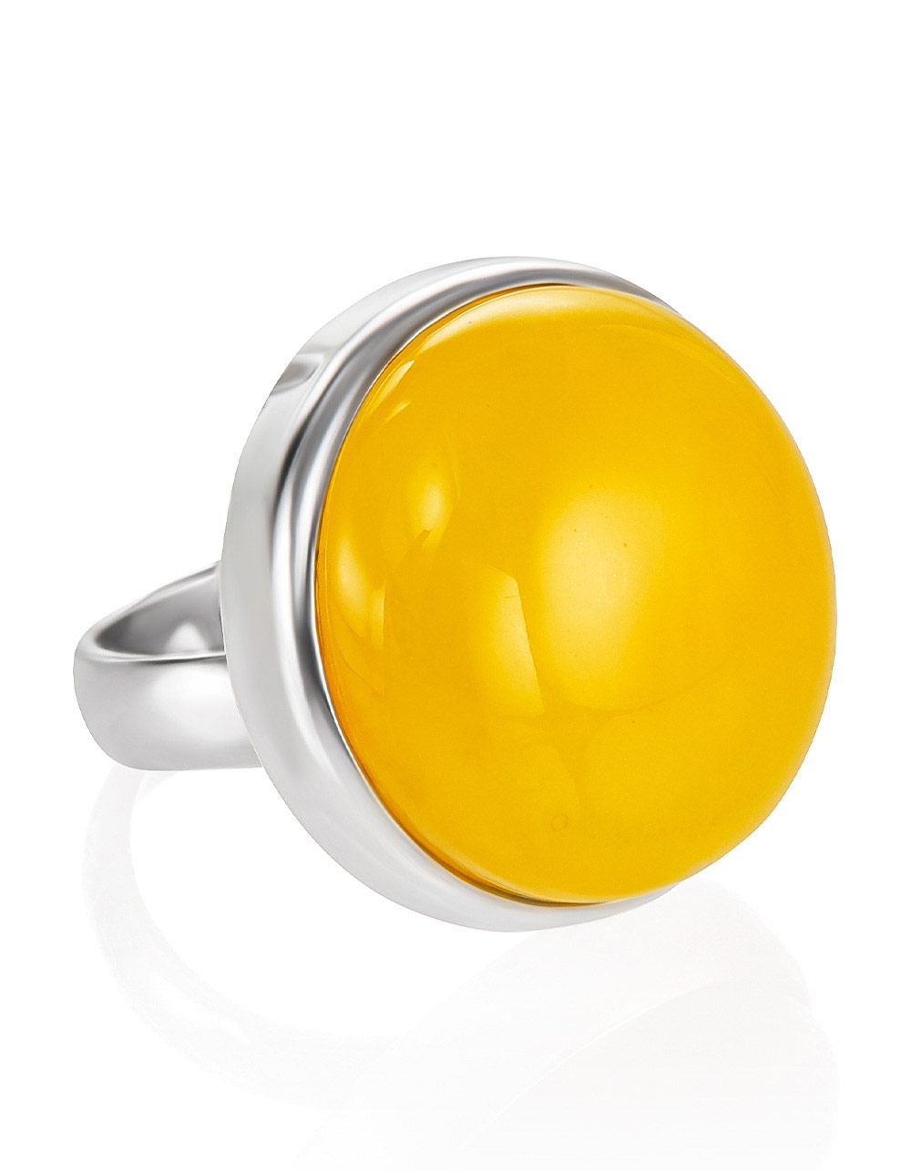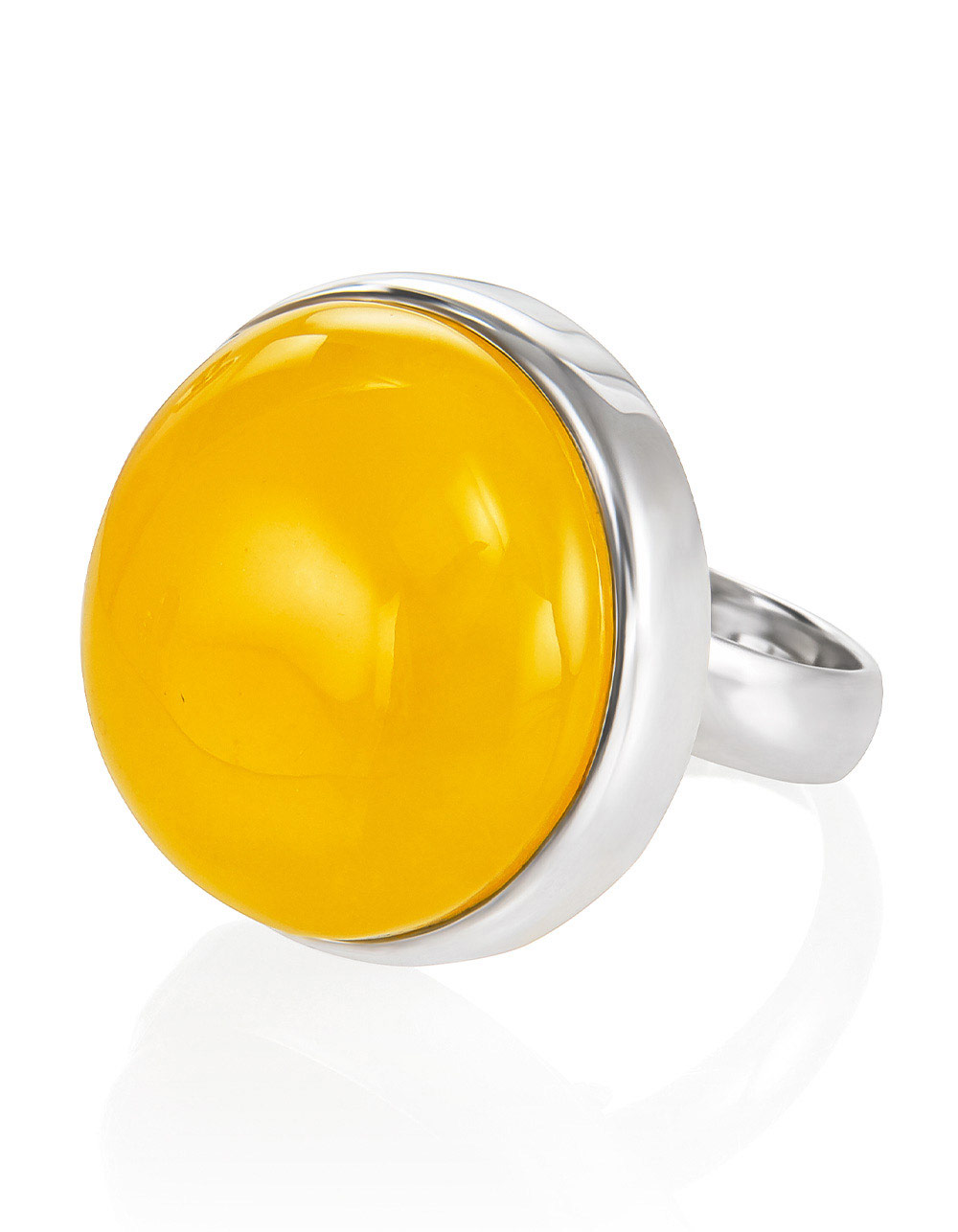 Круглое коктейльное кольцо с ярко-медовым янтарём