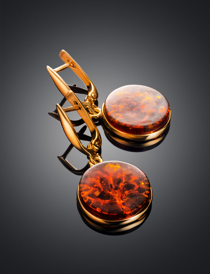 Круглые серьги «Бельтайн» из коньячного янтаря