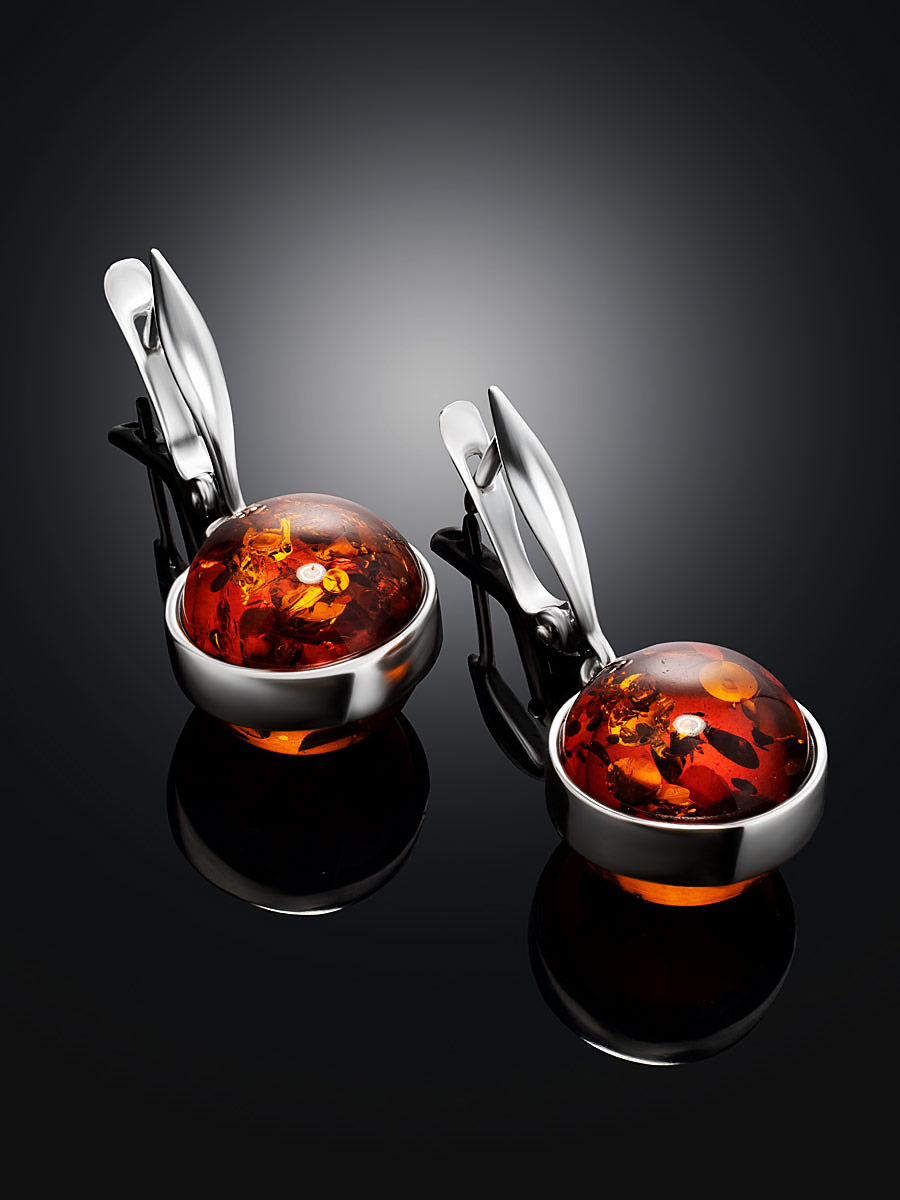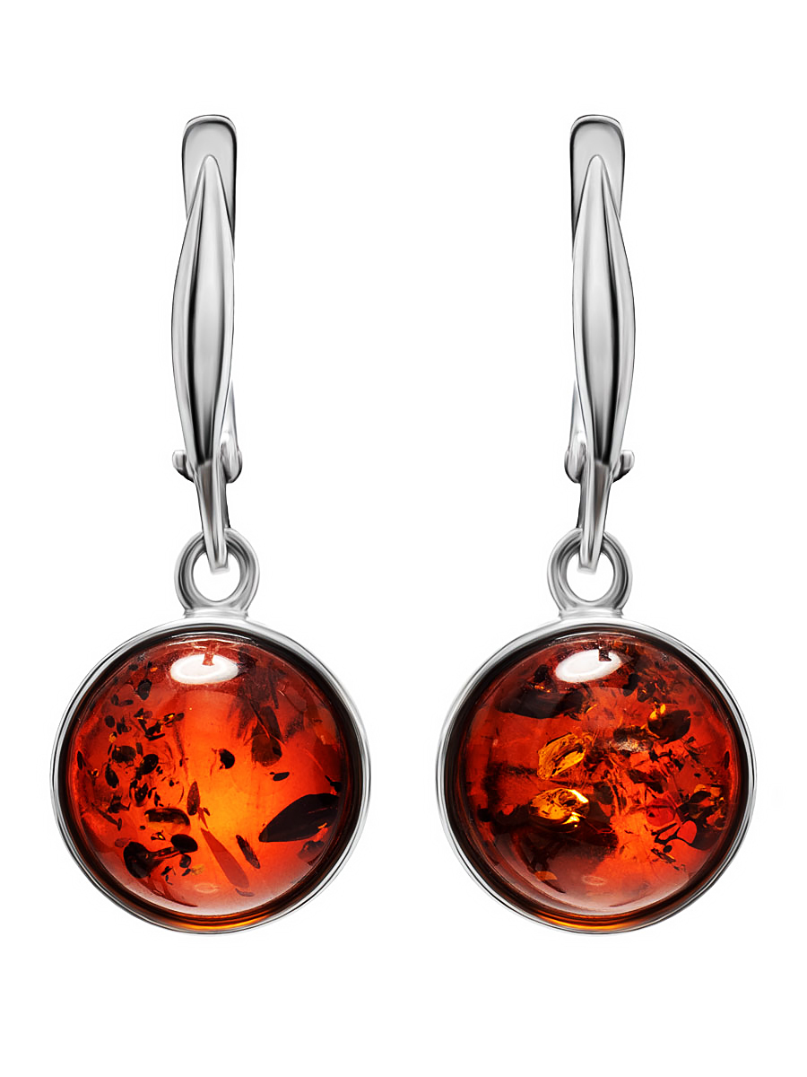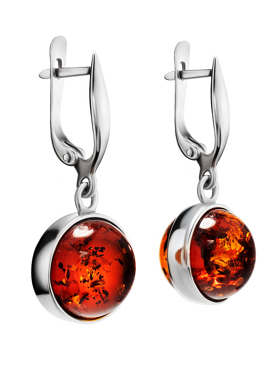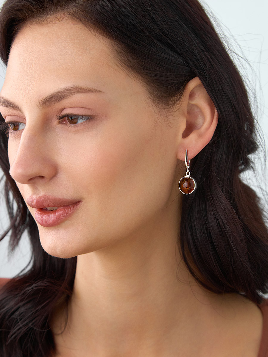 Круглые серьги из натурального янтаря коньячного цвета «Сорбонна»