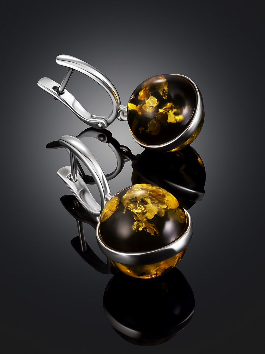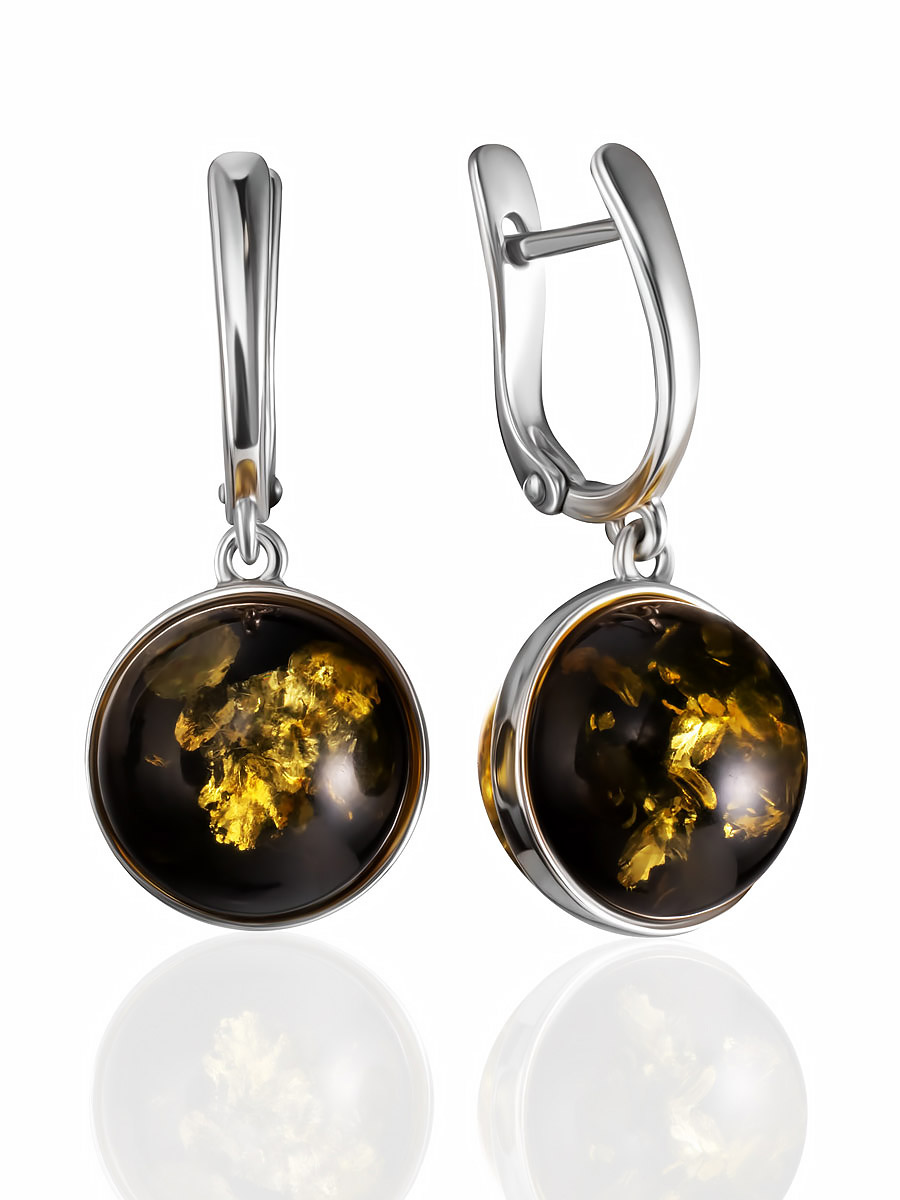 Круглые серьги из натурального янтаря зелёного цвета «Сорбонна»