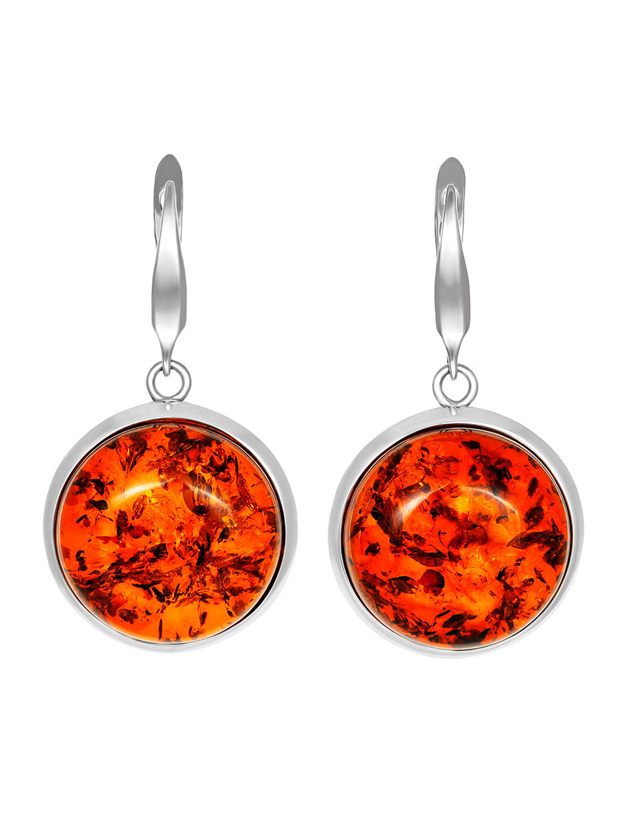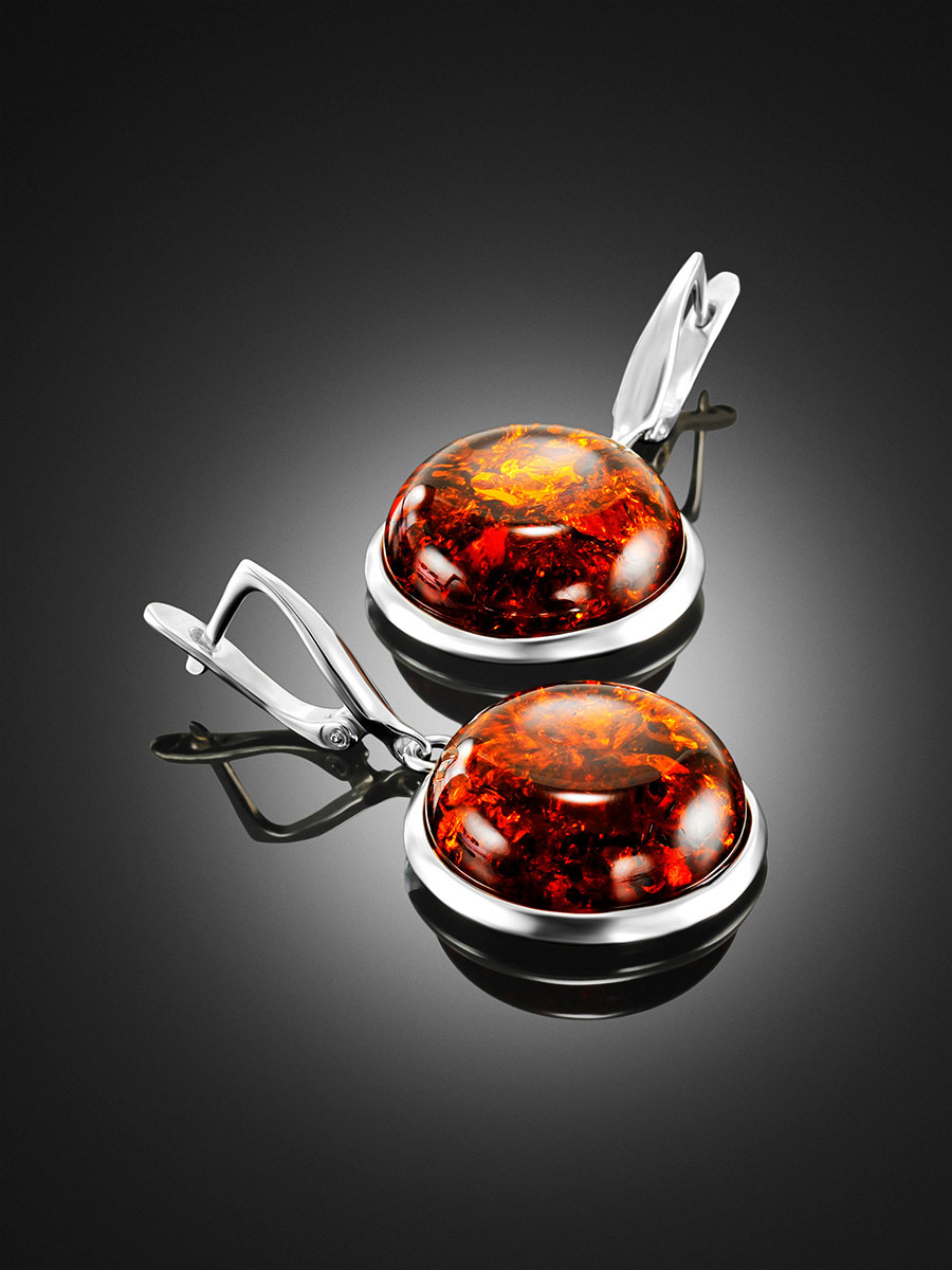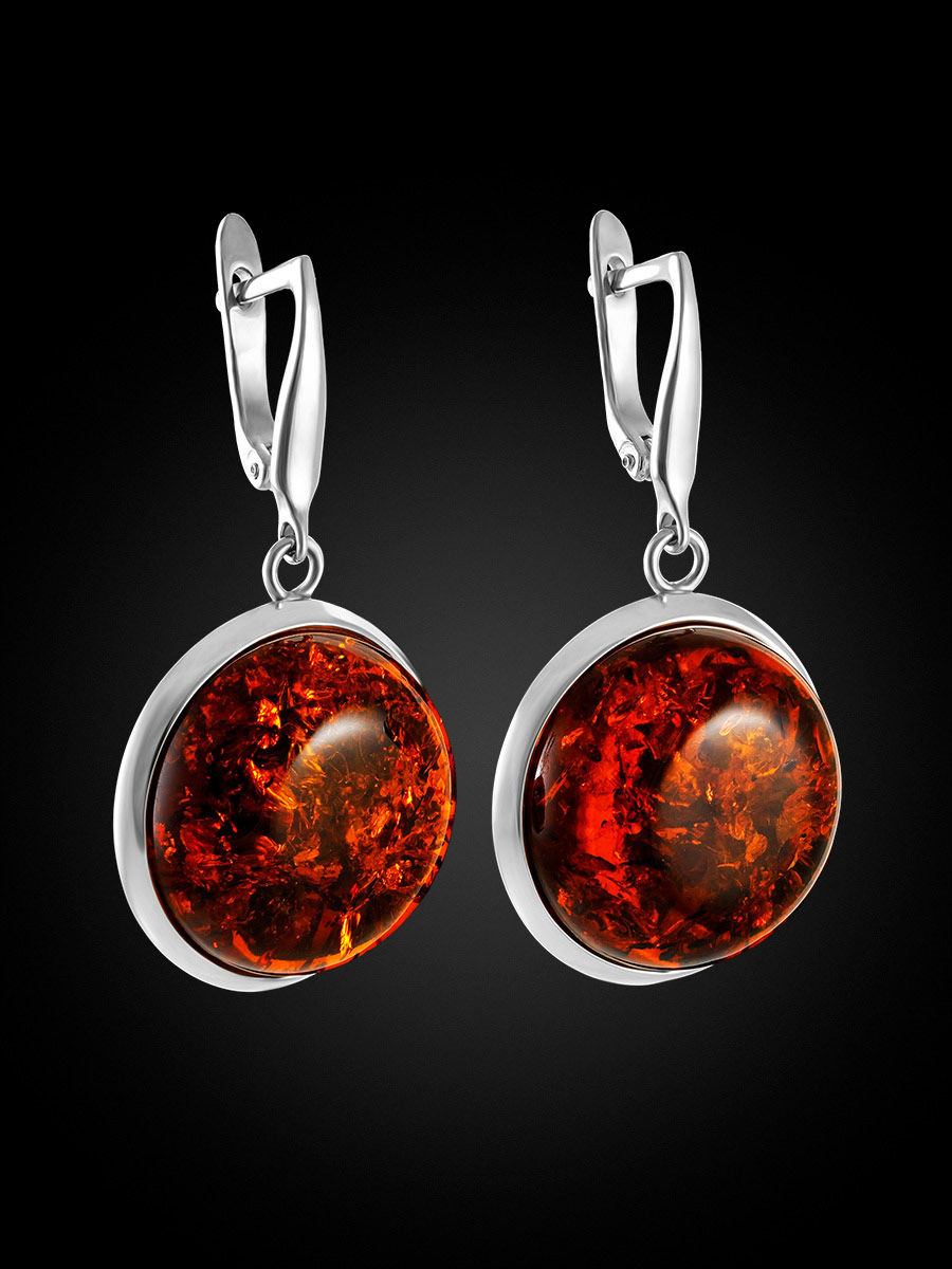 Круглые серьги из янтаря тёмно-коньячного цвета «Глянец»