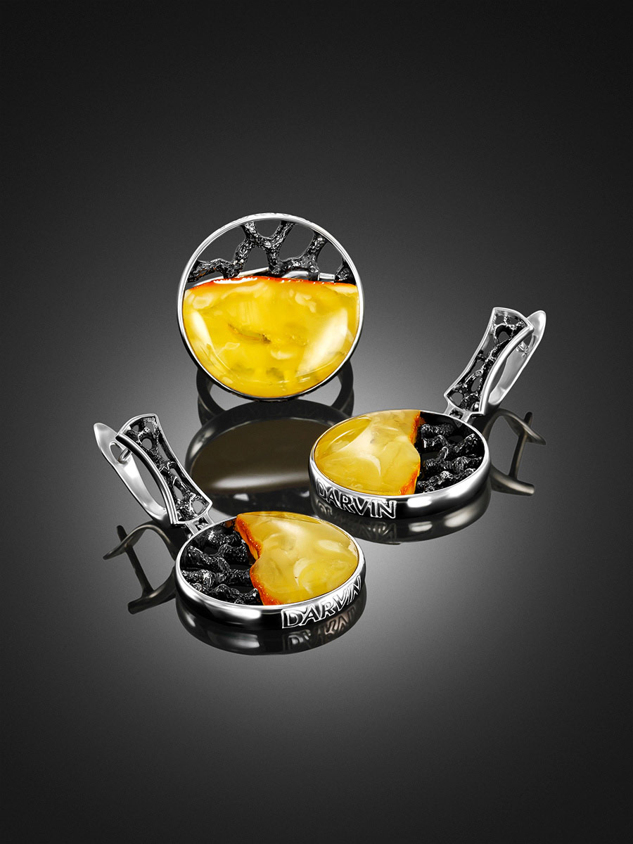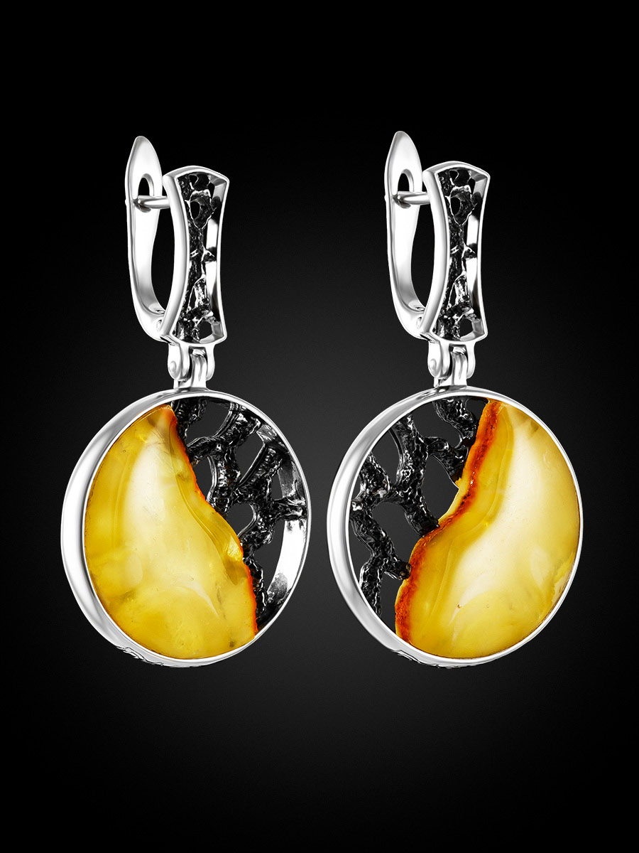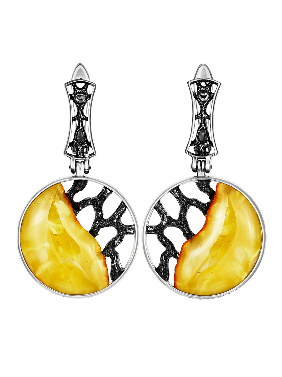 Круглые серьги с натуральным балтийским медовым янтарём «Модерн»