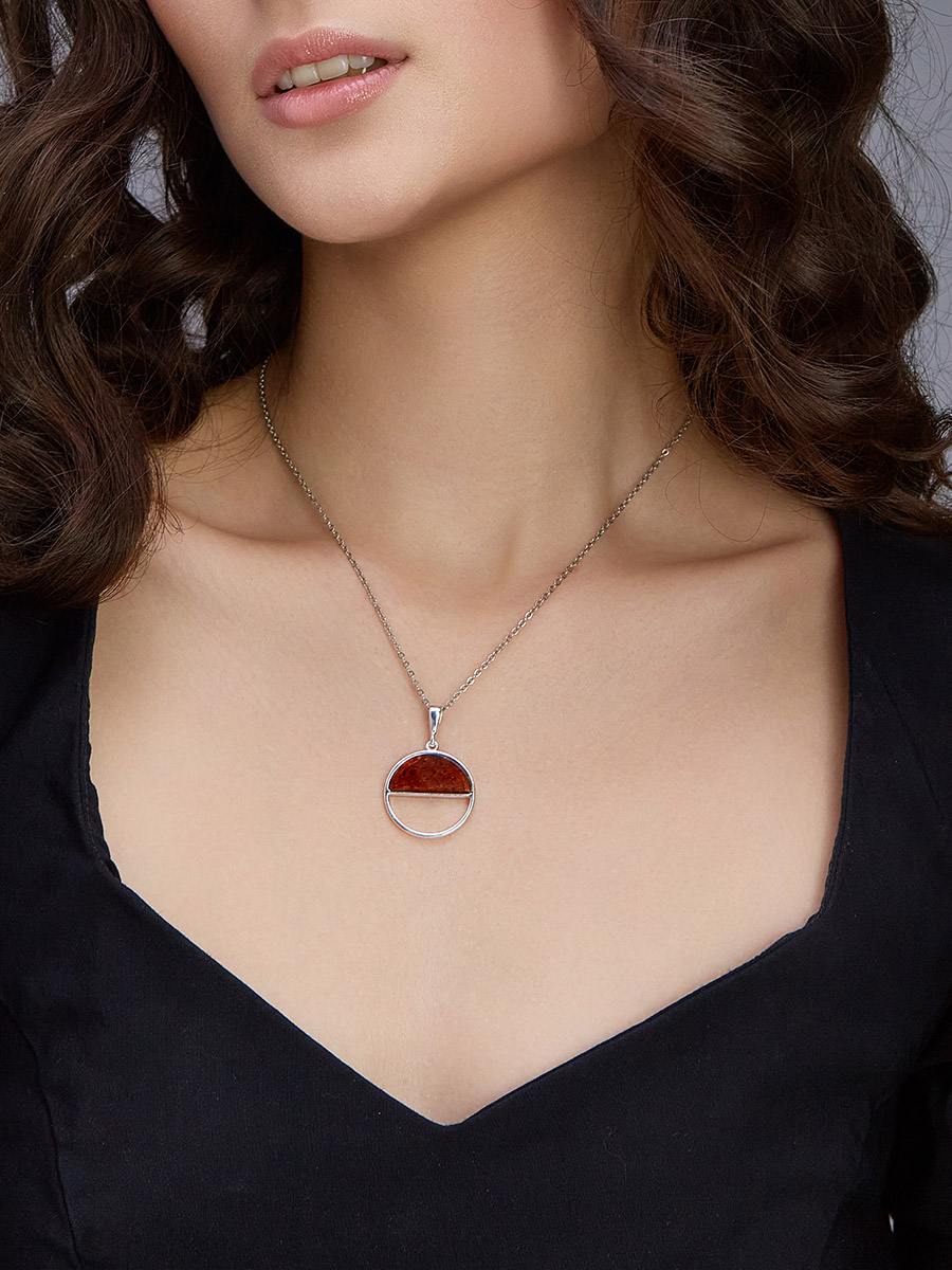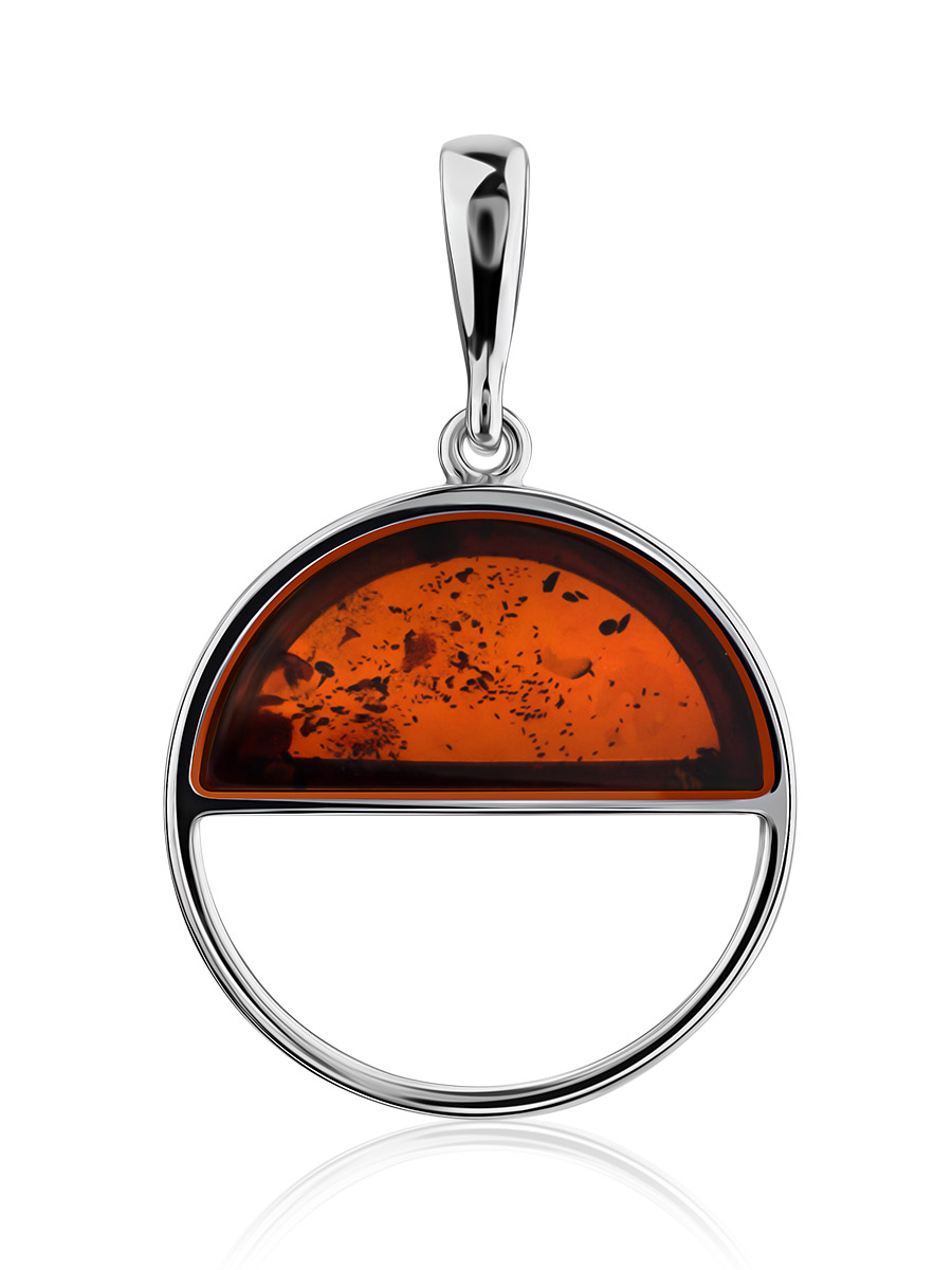 Круглый плоский кулон из натурального янтаря коньячного цвета «Монако»