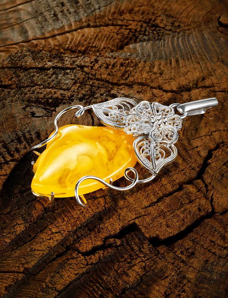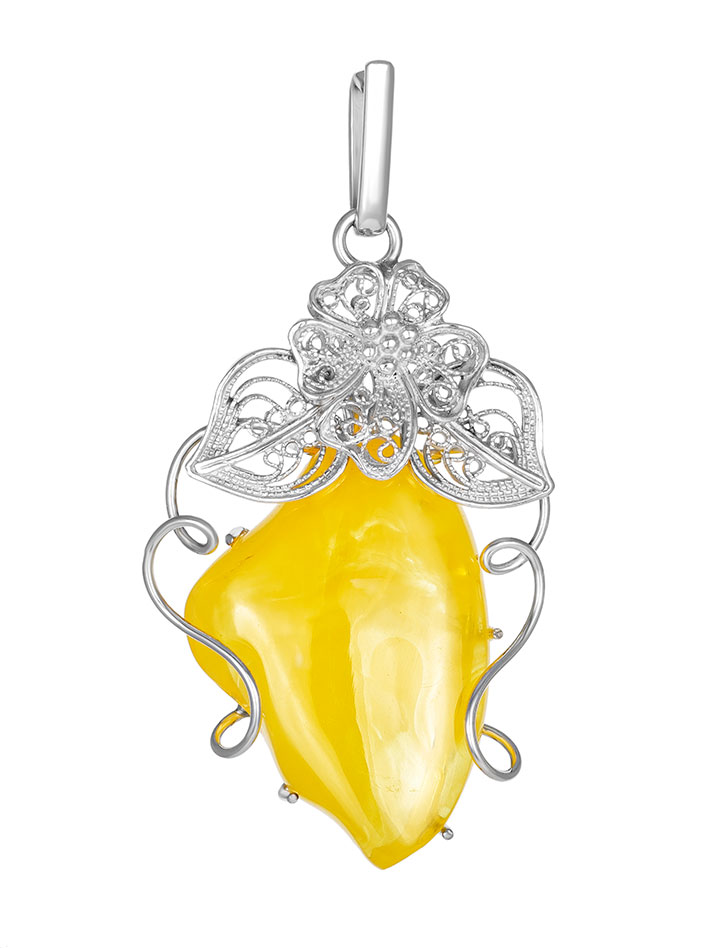 Крупная подвеска из цельного натурального янтаря медового цвета «Филигрань»