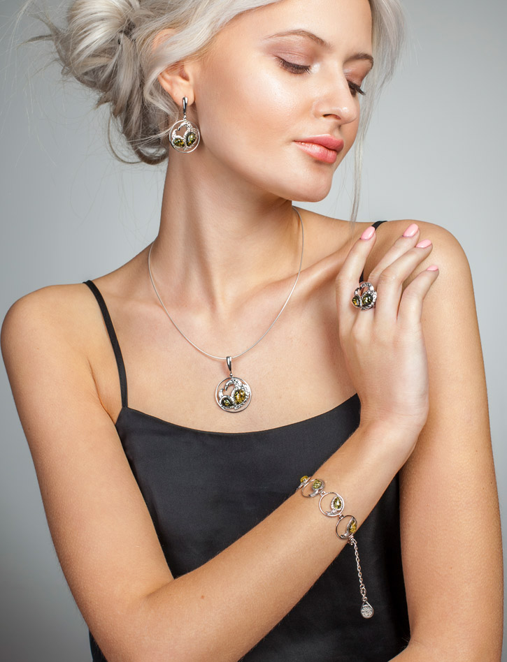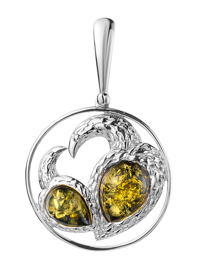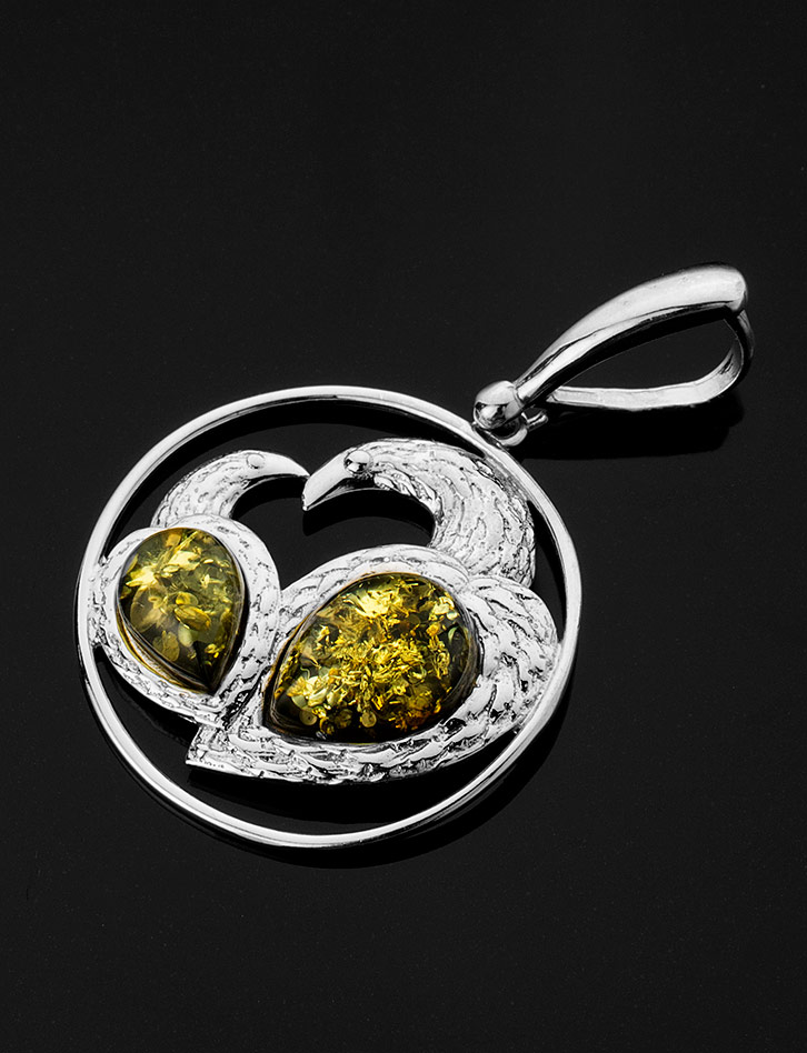 Крупная подвеска «Лирика» с натуральным янтарём зелёного цвета