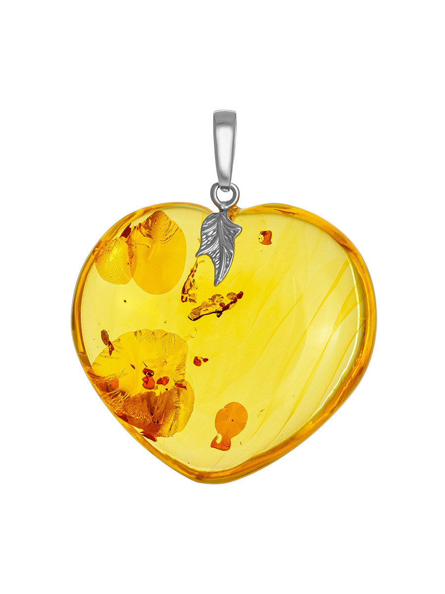 Крупная подвеска-сердце из натурального цельного лимонного янтаря