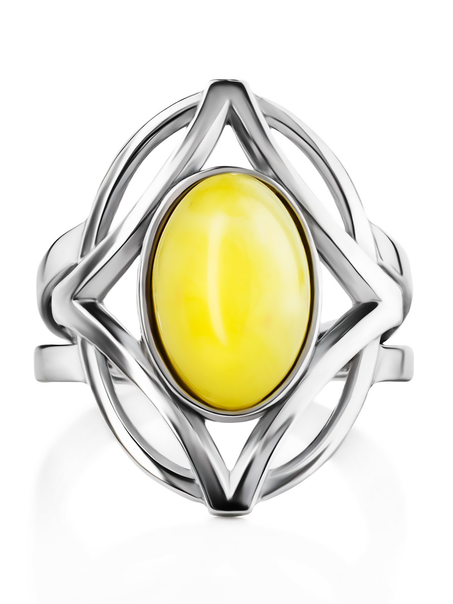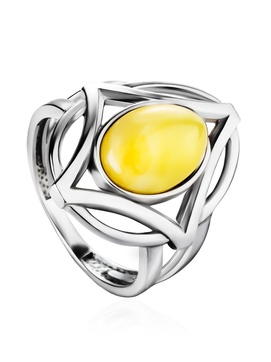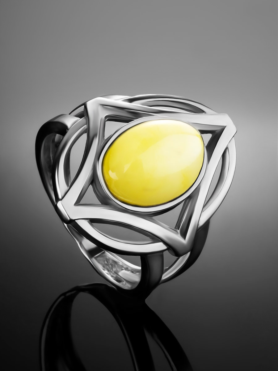 Крупное кольцо «Буссоль» из натурального янтаря медового цвета