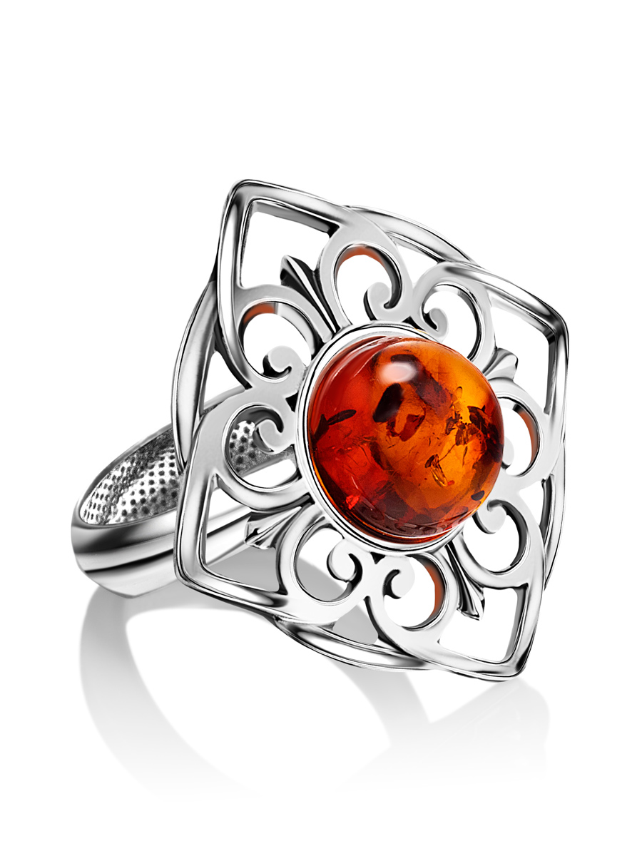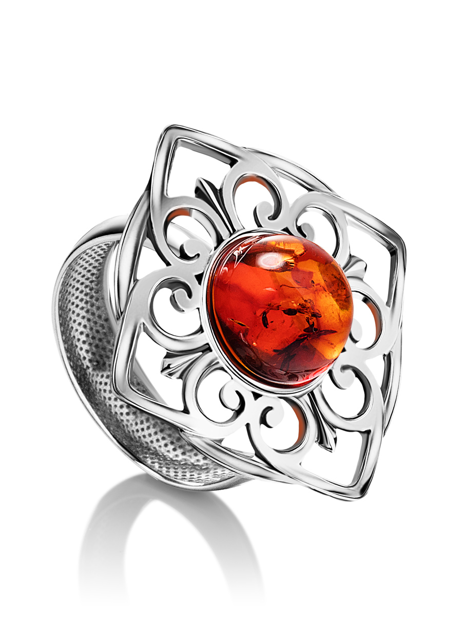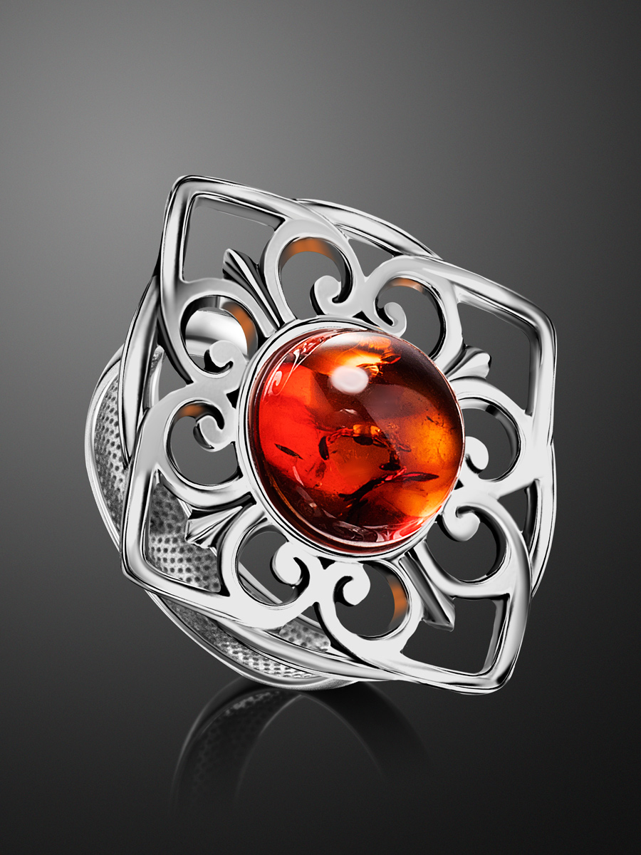 Крупное кольцо из натурального янтаря вишнёвого цвета «Кордова»