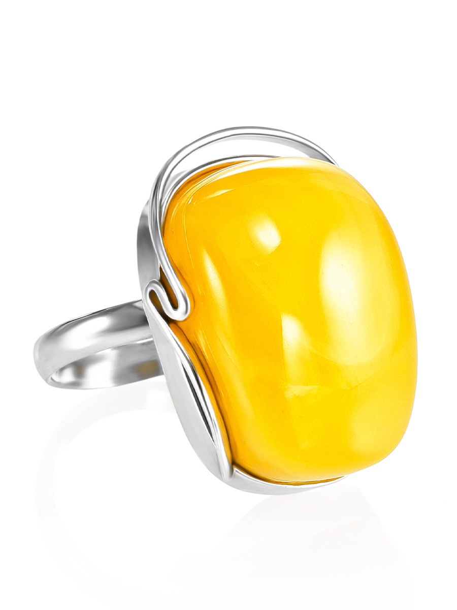 Крупное кольцо «Маньяна» со вставкой балтийского медового янтаря