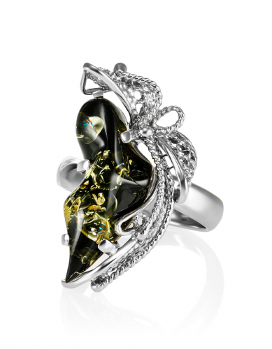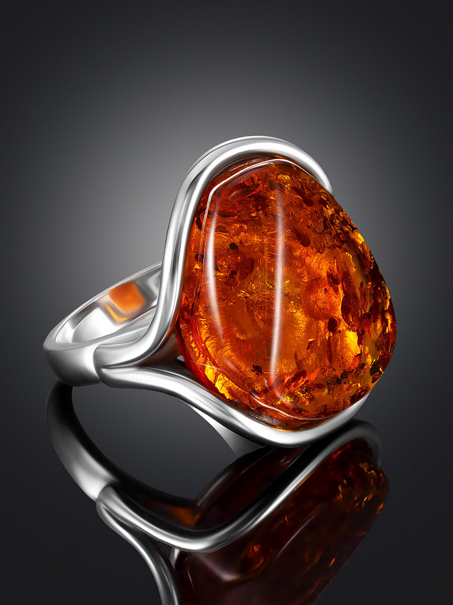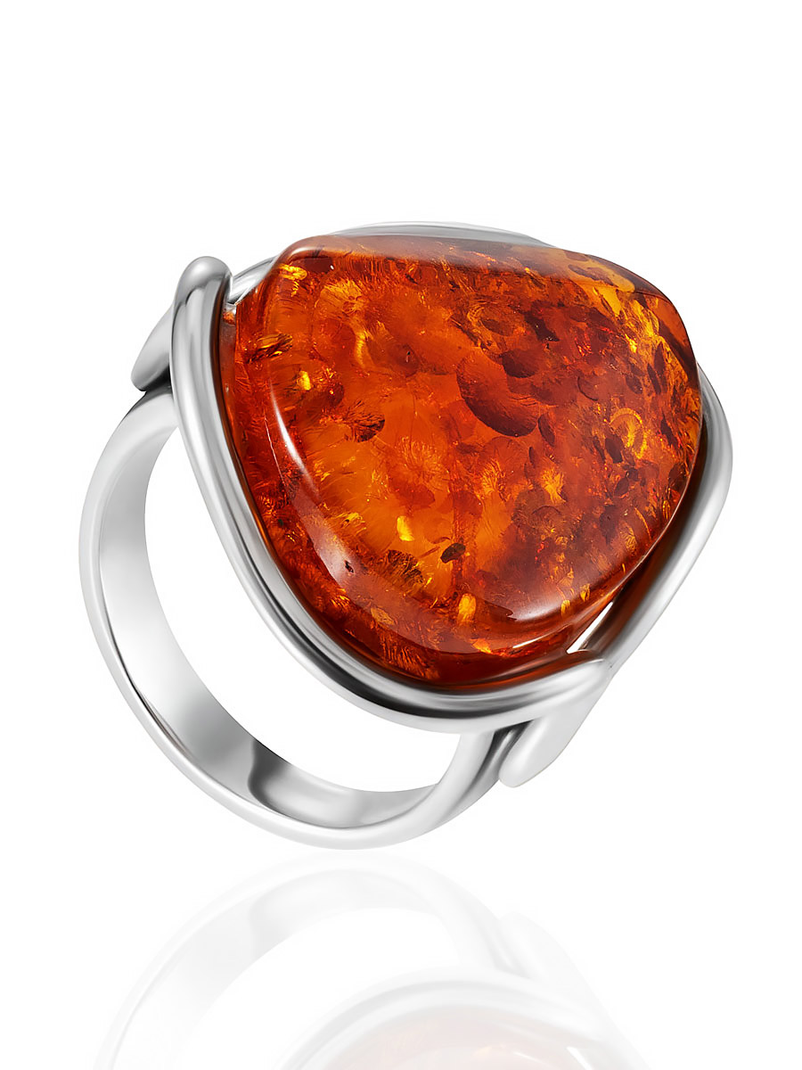 Крупное кольцо с натуральным янтарем коньячного цвета