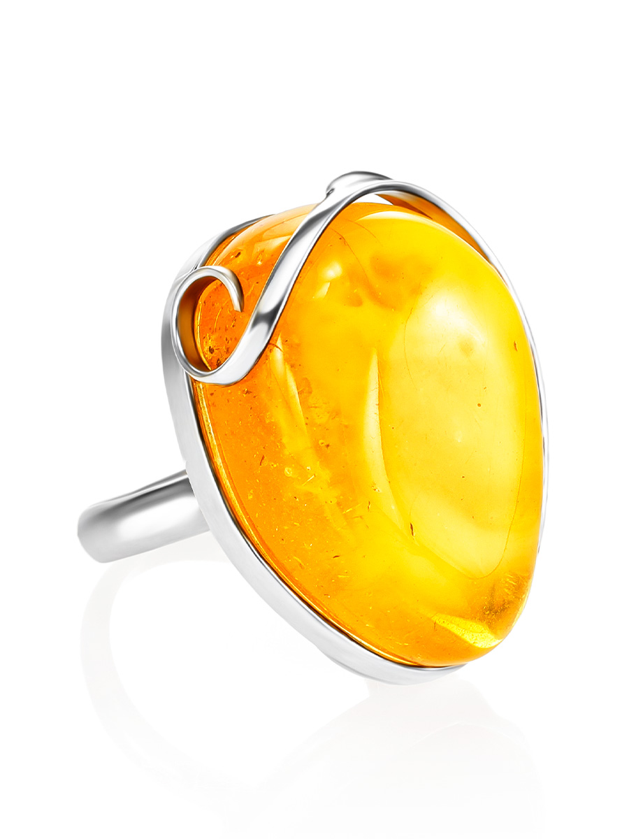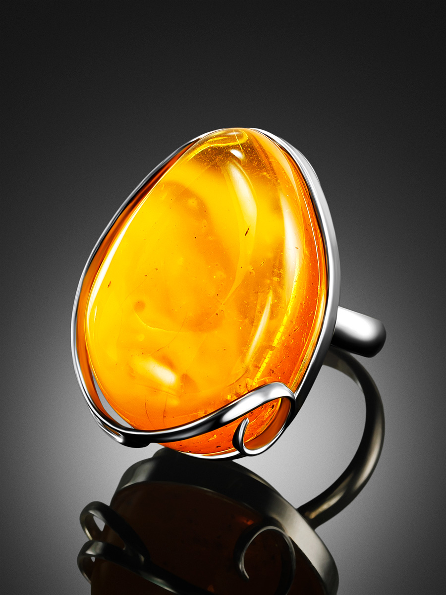 Крупное кольцо с вставкой из натурального медового янтаря «Риальто»
