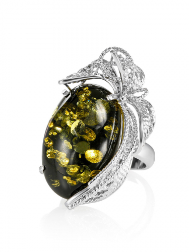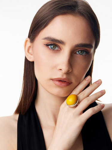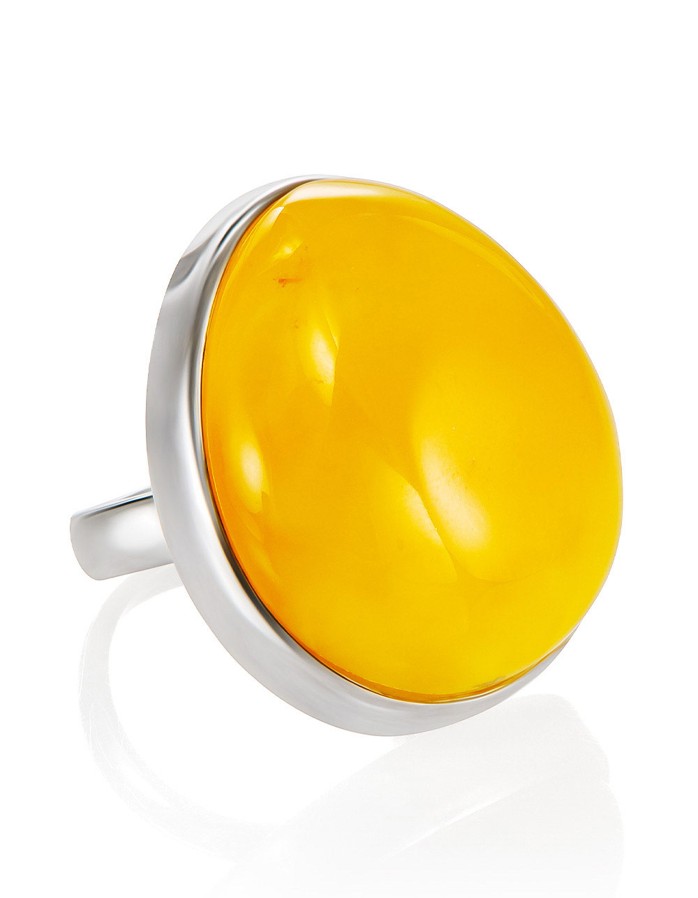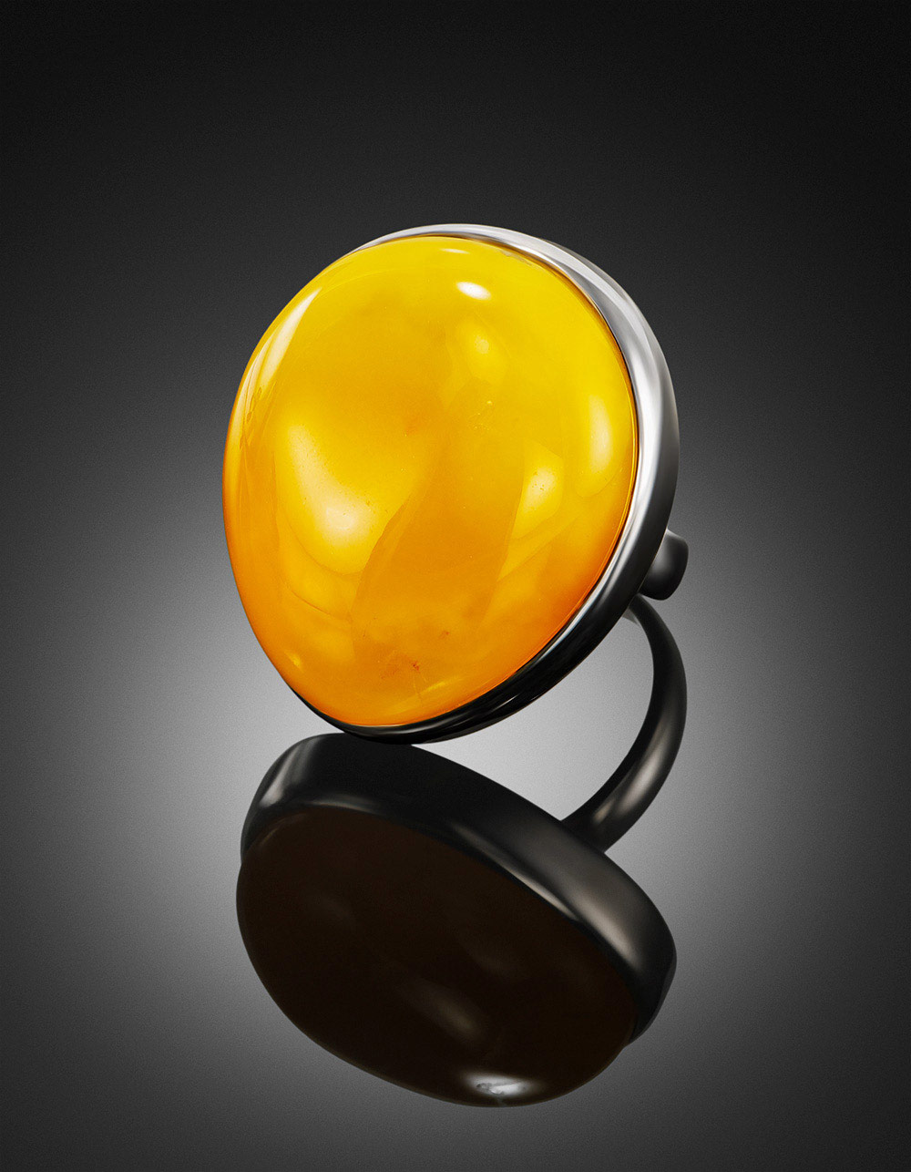 Крупное кольцо со вставкой из янтаря медового цвета «Глянец»