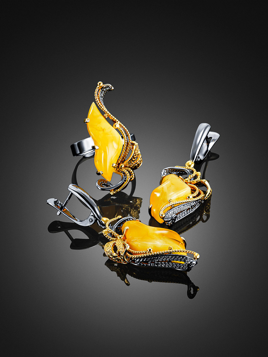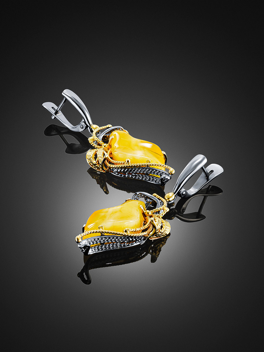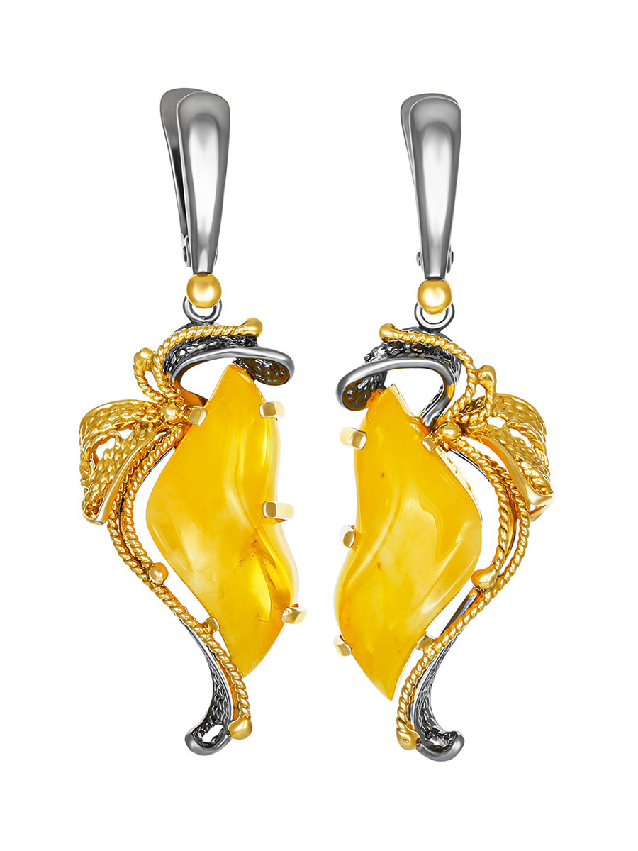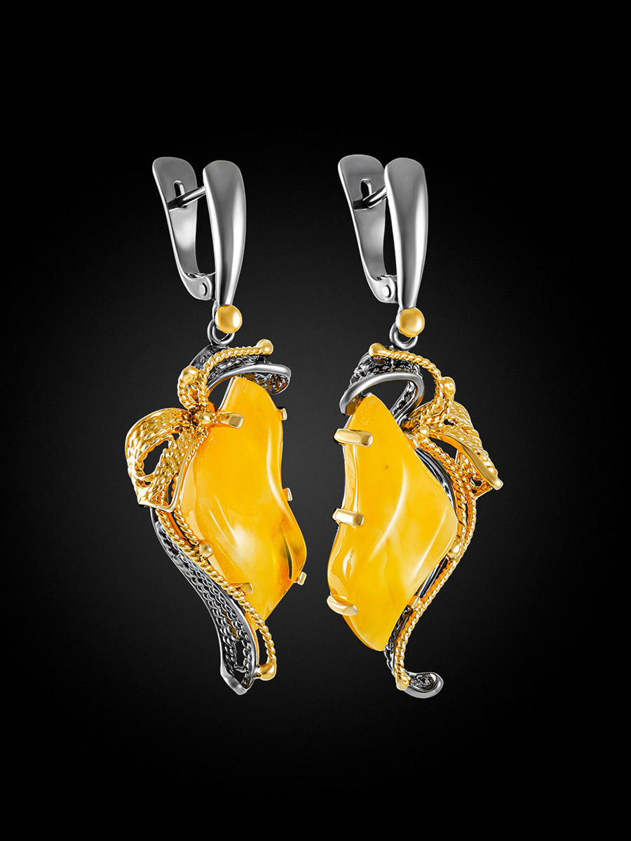 Крупные нарядные серьги из янтаря медового цвета «Филигрань»