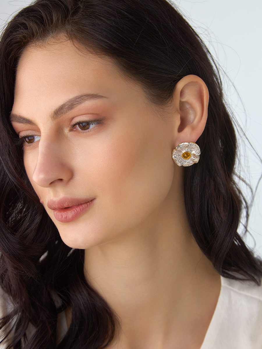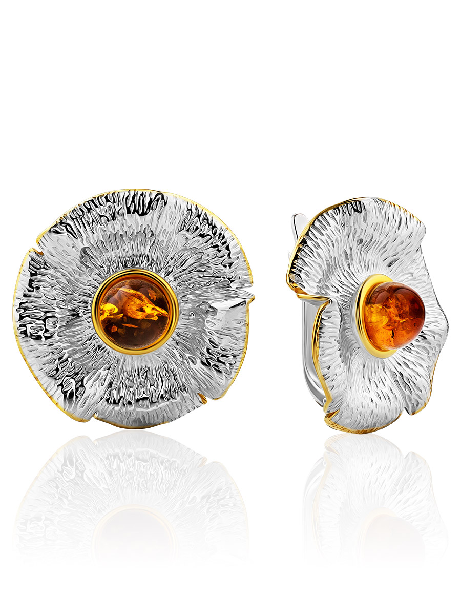 Крупные серьги «Мак» из натурального золотистого янтаря