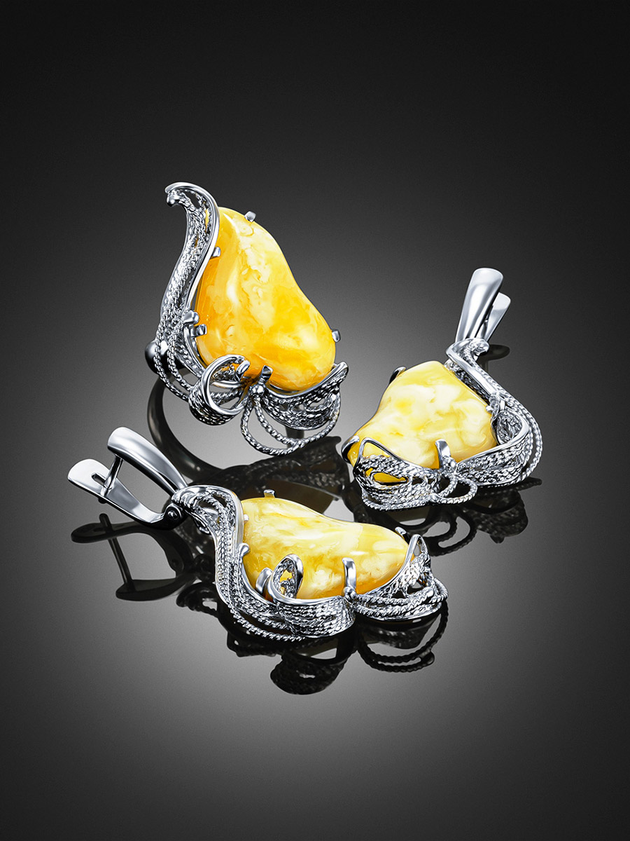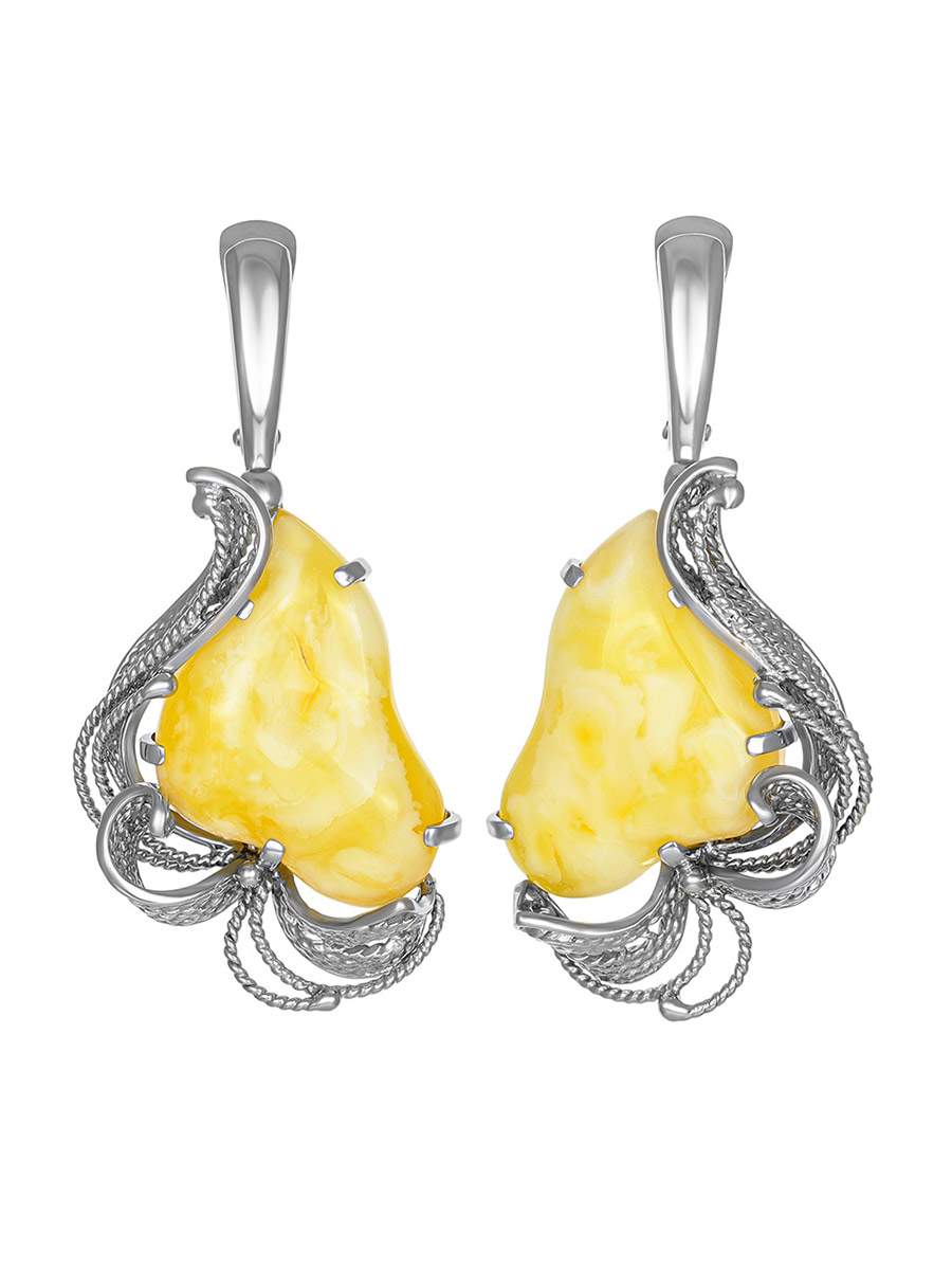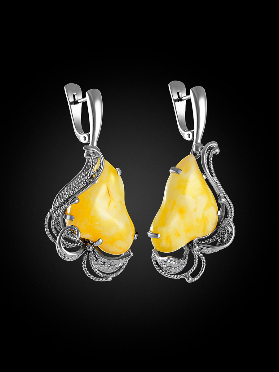Крупные серьги со вставками из натурального медового янтаря «Филигрань»