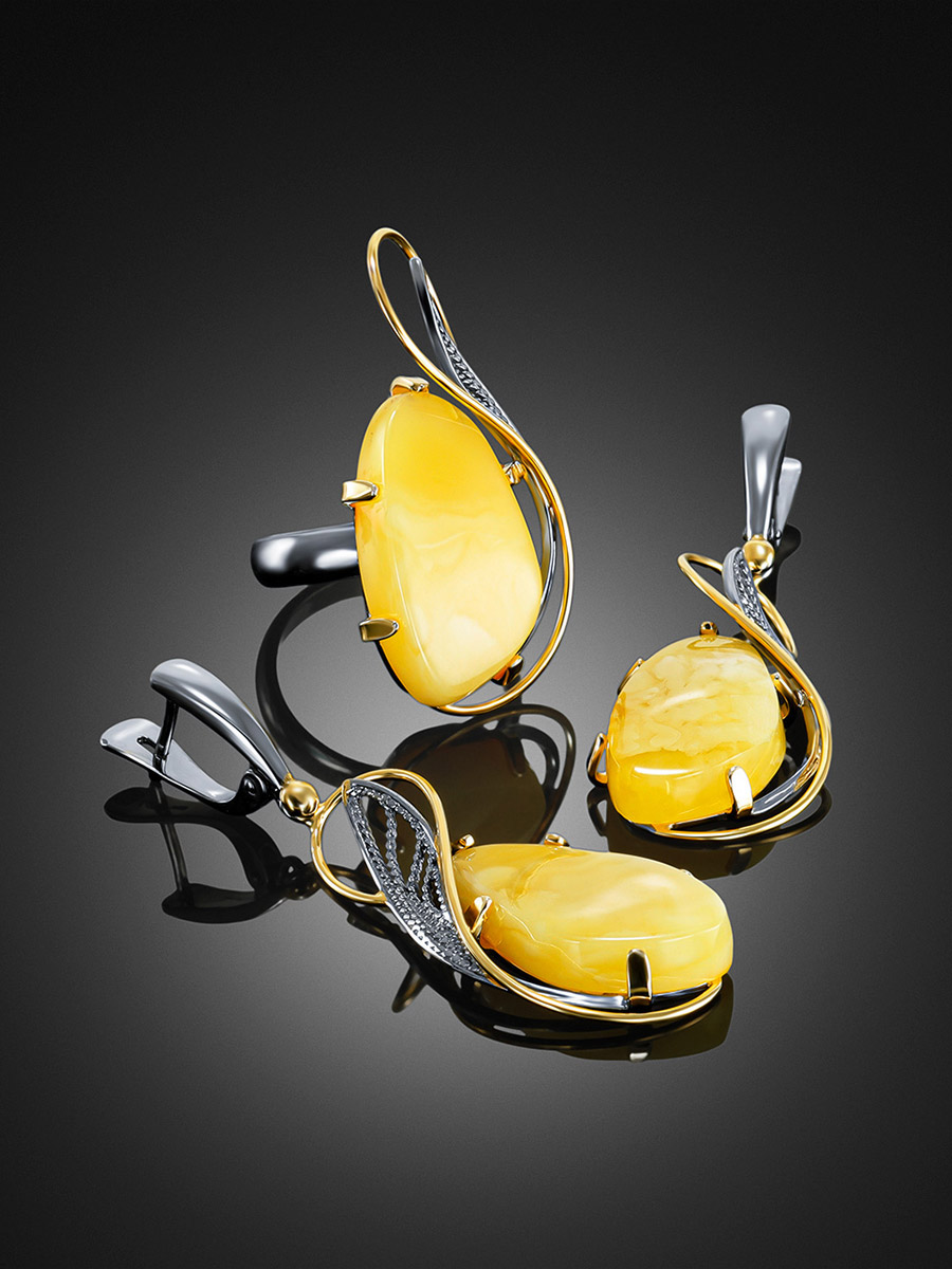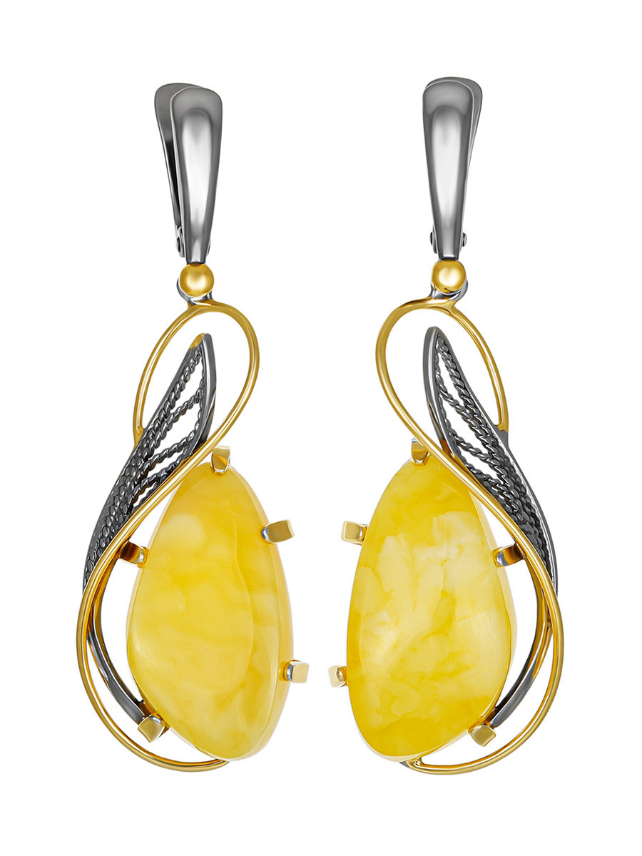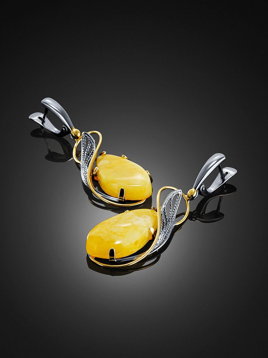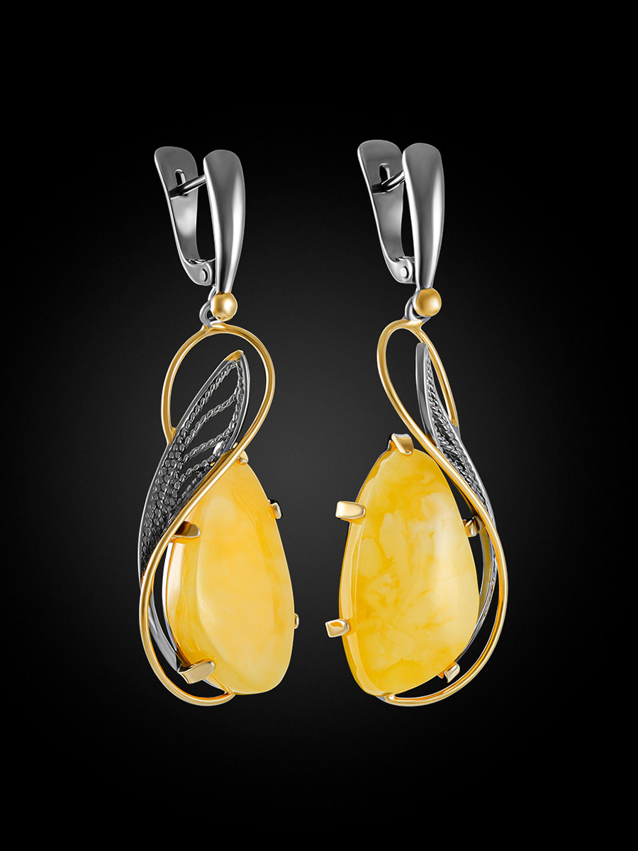 Крупные серьги со вставками из натурального медового янтаря «Филигрань»