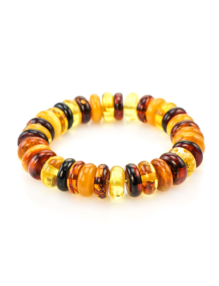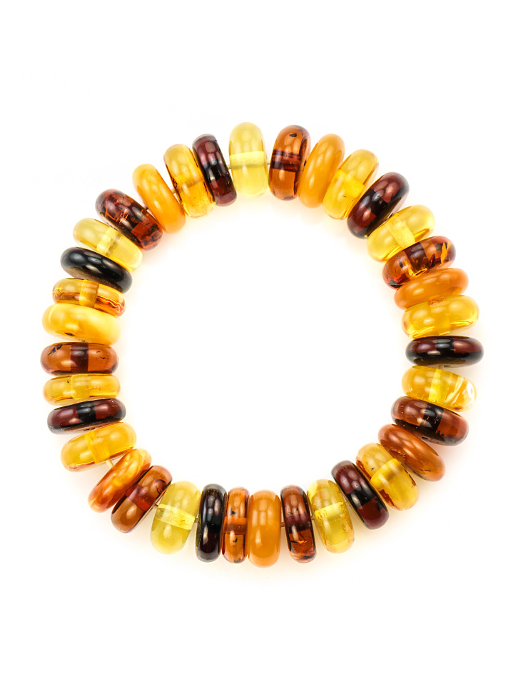 Крупный браслет из натурального балтийского янтаря четырёх цветов «Карамель крупная»